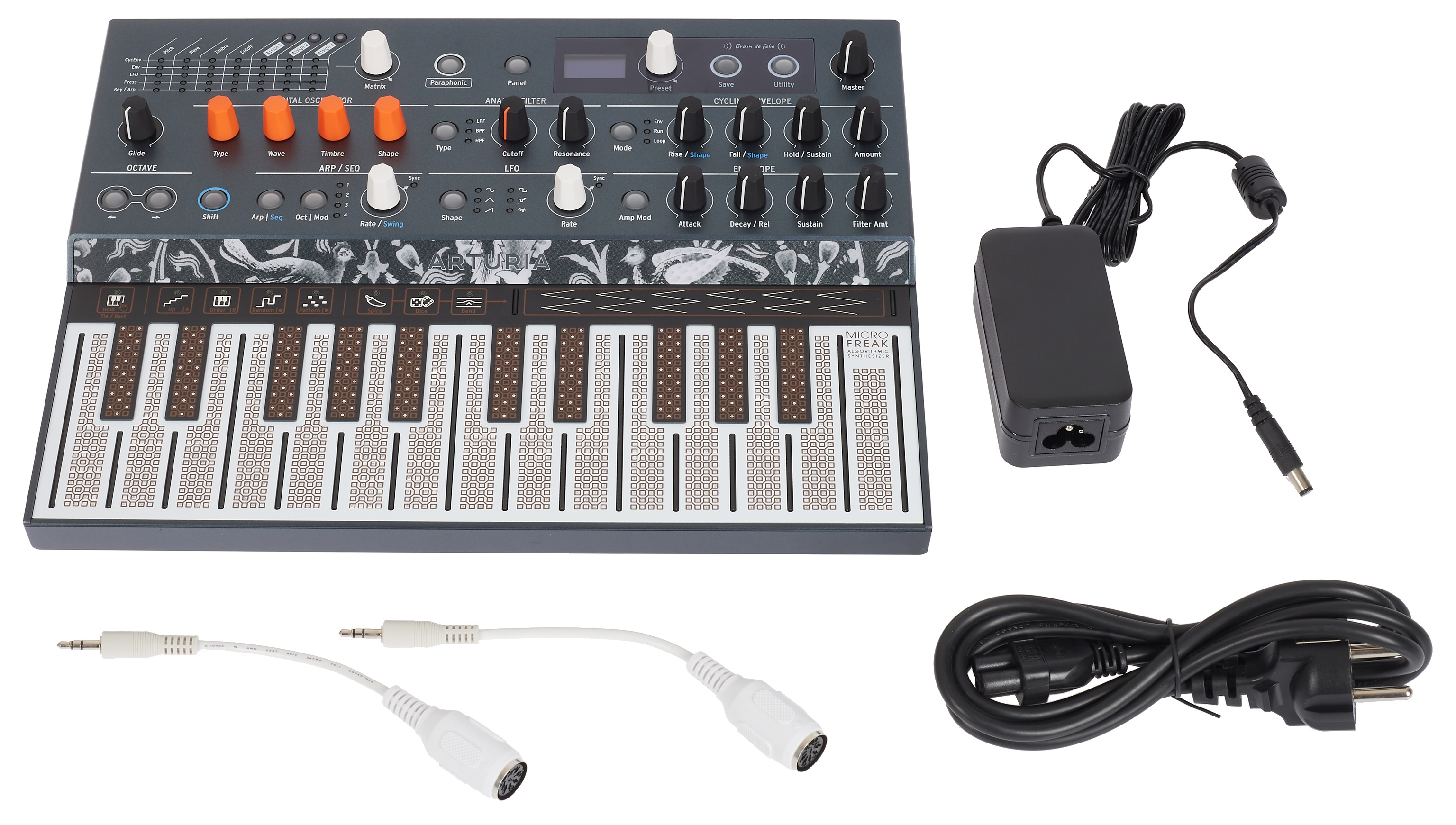 Syntezátor Arturia MicroFreak je originálny syntetizátor s digitálnymi oscilátormi, analógovým filtrom a zvukmi z populárneho eurorackového modulu Plaits od Mutable Instruments. Funguje v monofónnom aj parafonickom režime, je vybavený plochou klaviatúrou s polyfonickým aftertouchom a nechýba mu sekvencer, arpeggiator, modulačná matica a pokročilé náhodné funkcie. Rozhodne patrí medzi najzaujímavejšie nástroje v tejto cenovej kategórii. Ako základ pre tvorbu zvuku slúži 11 digitálnyc