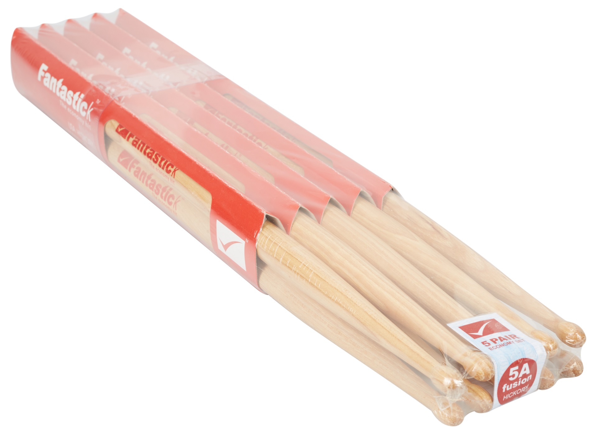 Zvýhodnený set hickorových paličiek Fantastický hikor s dvojitým vystužením a protišmykovou vrstvou. Tyčinky sa predávajú v ekonomických sadách po 5 pároch. Fantastick Hokejky Economy Hit vznikli ako reakcia na dopyt bubeníkov po lacnejších paličkách s balbexovou dvojitou povrchovou úpravou. Hokejky Fantastick sú vyrobené z netriedeného hikoru, pričom môžu mať väčšie hmotnostné rozdiely. Fantasticky sú novo zladené podľa hmotnosti +-2 gramy a ďalej odstupňované podľa rezonancie dreva. V rámci páru sú zabale