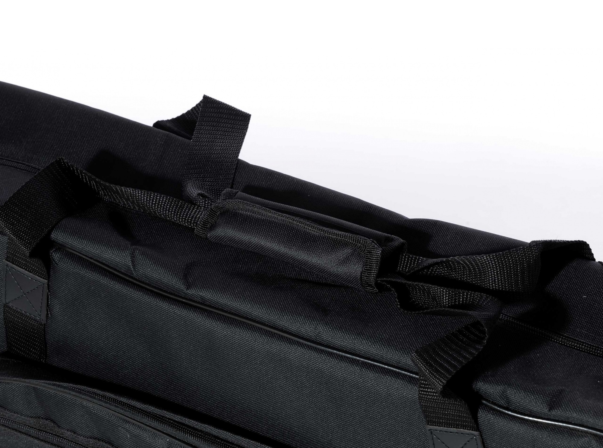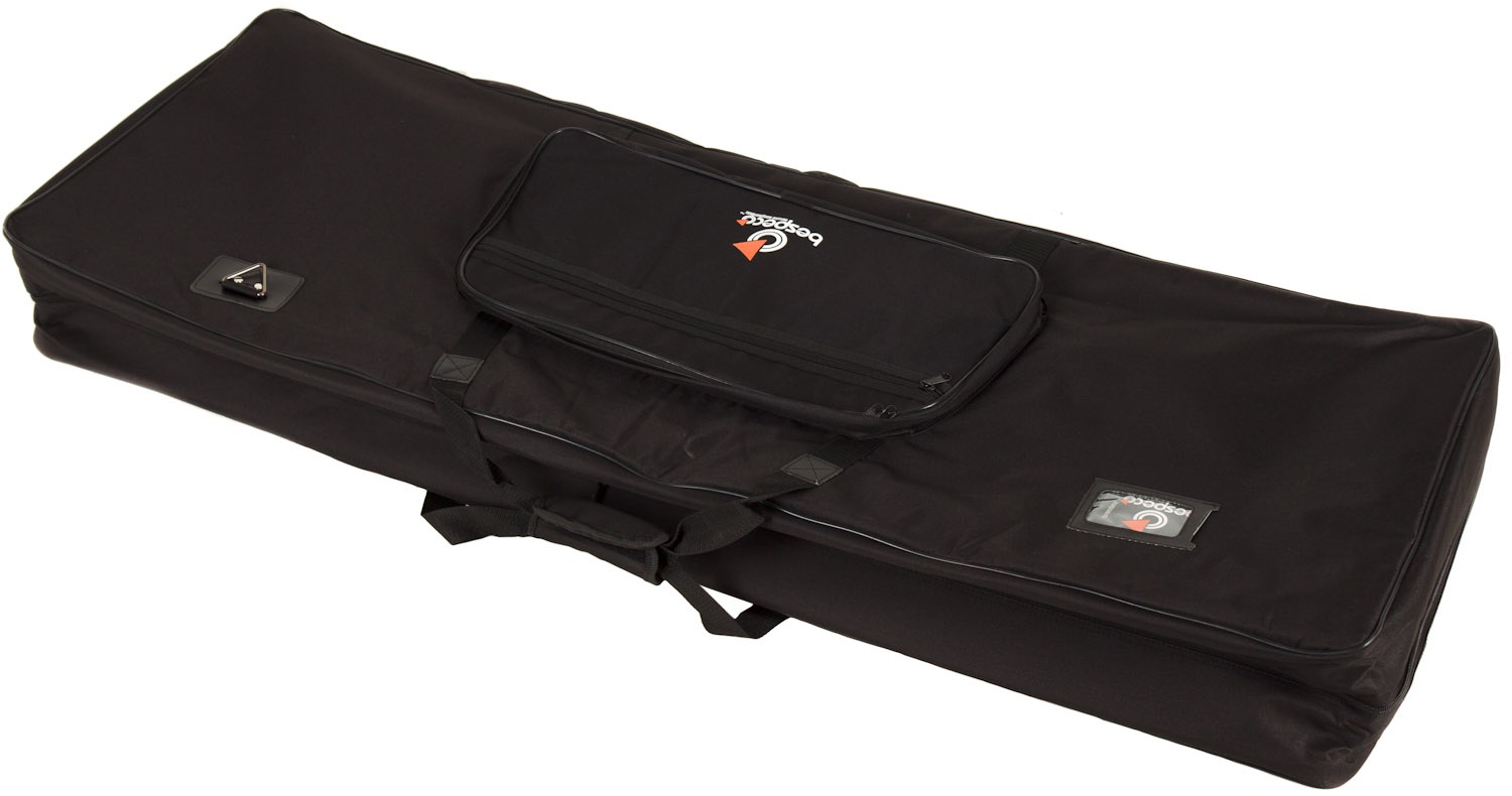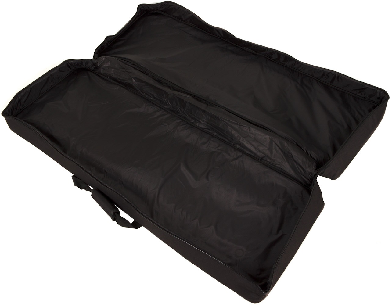 Klávesový obal Univerzálny prepravný kufor vhodný pre klávesové nástroje s rozsahom 76 klávesov. Puzdro je vyrobené z kvalitného nylonu odolného proti roztrhnutiu a má 20 mm hrubé prepletené polstrovanie a gumový podklad. Predná strana ponúka priestranné vrecko na noty a drobné príslušenstvo, zatiaľ čo dvojica držadiel a ramenný popruh zabezpečujú pohodlnú prepravu.