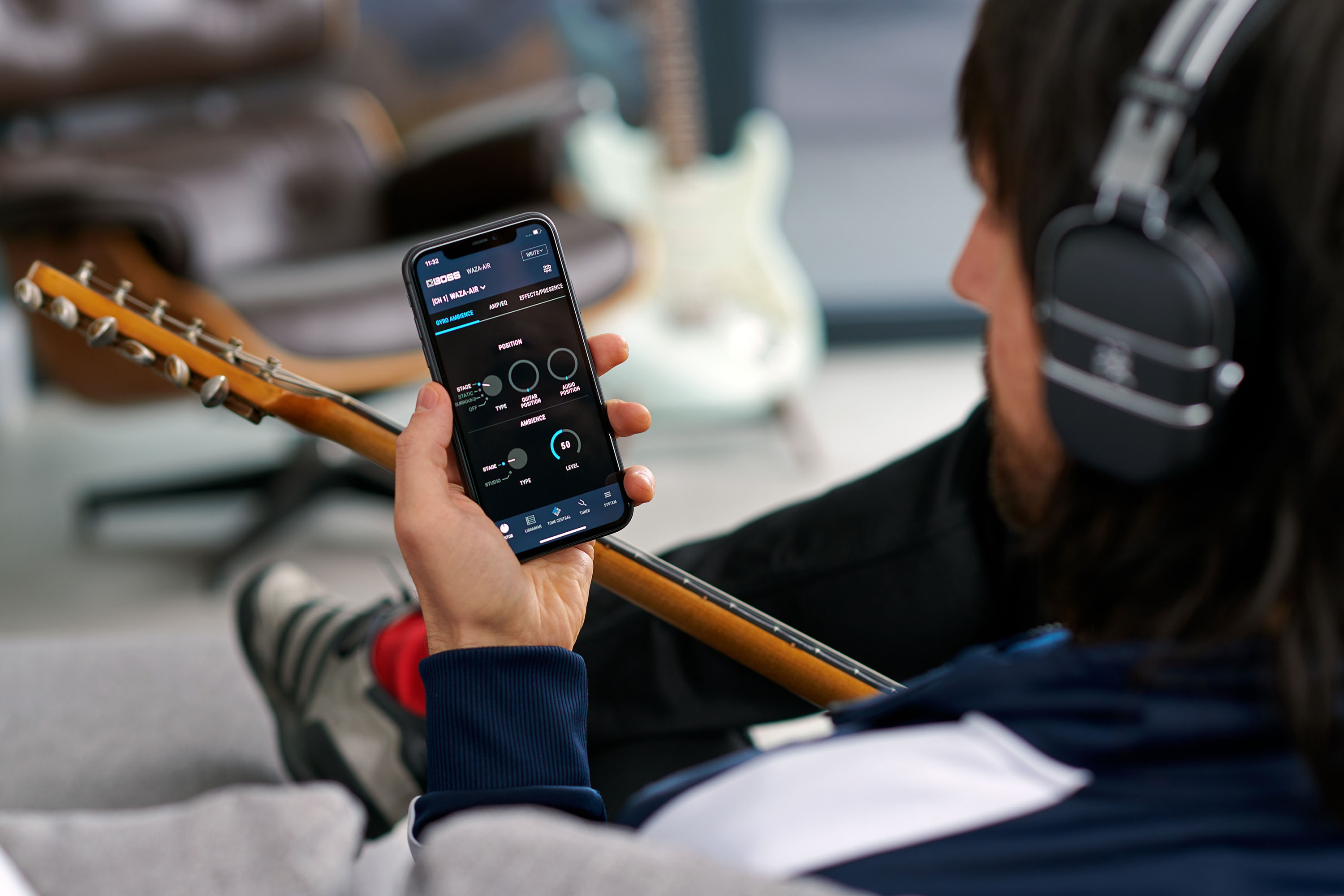 Bezdrátová slúchadlá Vďaka kombinácii špičkových tónov zosilňovačov a efektov s prelomovou technológiou priestorového zvuku BOSS dokáže revolučný Waza-Air posunúť hru na gitaru do výšin, o akých sa vám doteraz ani nesnívalo. Tento osobný systém počúvania dodáva prehrávaniu cez slúchadlá úžasný realizmus vďaka gyroskopu a pohyblivému 3D priestoru. Ponúka prirodzený, bohatý a rezonujúci tón, ktorý pôsobí, akoby ste mali zosilňovač vedľa seba, a je nekonečne inšpiratívny. Exkluzívne bezdrôtové pripojenie zname