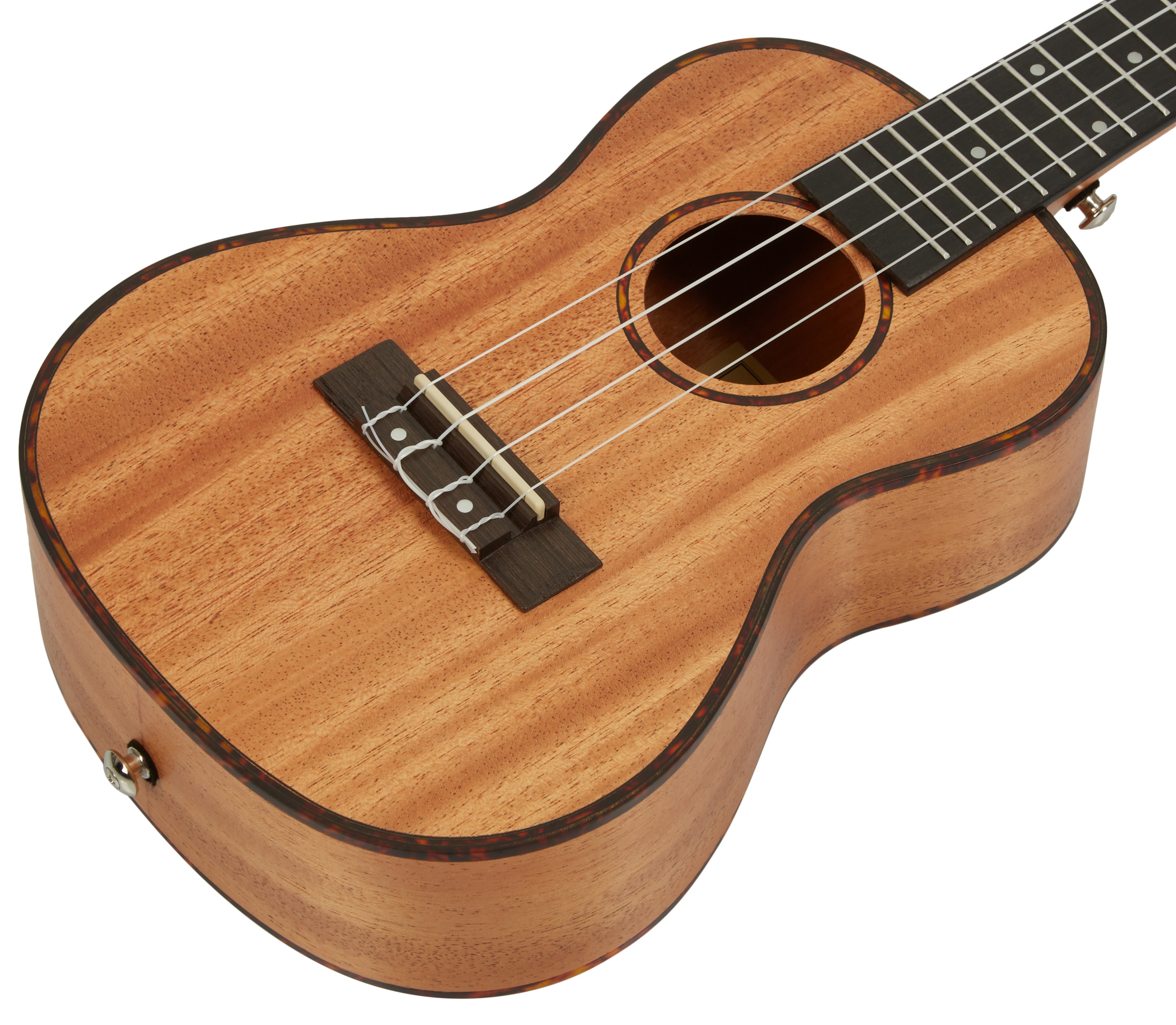 Akustické ukulele Koncertné ukulele Cascha Premium je cenovo dostupný nástroj, ktorý poteší deti aj dospelých. Spolu s ukulele dostanete praktické polstrované puzdro (hrúbka polstrovania 5 mm) a tri trsátka, takže môžete okamžite vyraziť za zábavou k vode, na skaly, k moru… všade tam, kde to žije. Telo ukulele je vyrobené z mahagónu. Palisandrový hmatník je rozdelený osemnástimi pražcami (rovnaký materiál je použitý aj na hmatník). Struny sú osadené v pochrómovaných ladiacich mechanikách gitarového typu.