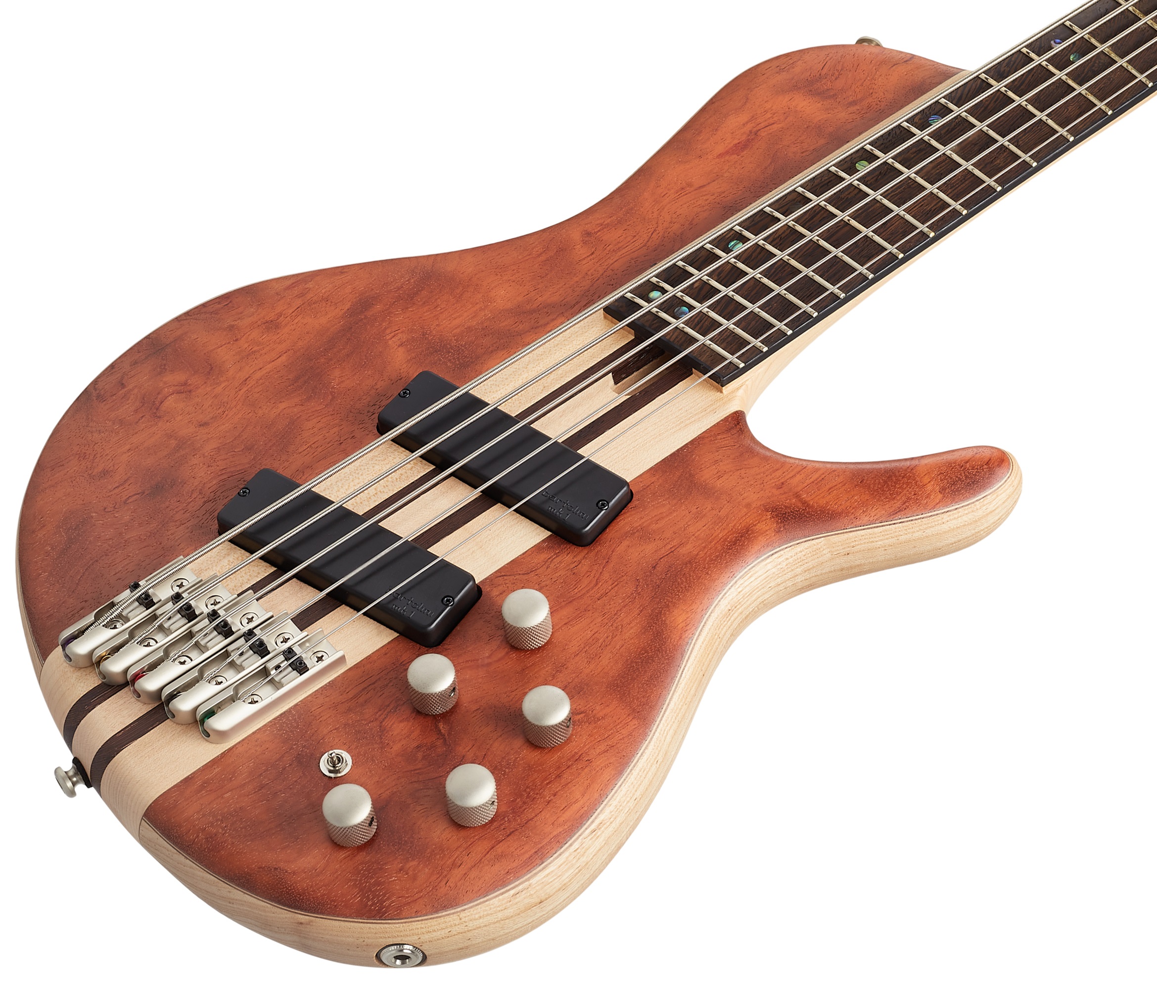Elektrická basgitara Model A5 Beyond zo série Artisan má priechodný krk zložený z piatich kusov drevín javor a Panga Panga, masívne jaseňové telo a vrchnú dosku Bubinga, ktorá rovnomerne prenáša vibrácie strún do tela, čoho výsledkom je veľmi špecifický a moderný zvuk s ideálnym pomerom basov, stredov a výšok. Jednostranný výrez zlepšuje stabilitu a vyváženosť nástroja, poskytuje maximálny komfort pri hre a ľahko prístupné vyššie polohy na hmatníku. Zásadným prvkom tejto basgitary je, samozrejme, viacpražco
