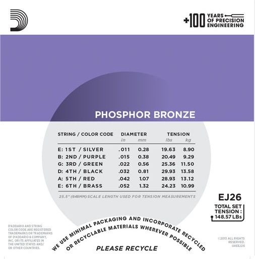 Kovové struny na akustickú gitaru Ak hľadáte struny na akustickú gitaru so zaobleným, teplým zvukom, séria D'Addario Phosphor Bronze je pre vás tou správnou voľbou. Fosforový bronz sa dnes bežne používa na výrobu strún, ale bola to práve spoločnosť D'Addario, ktorá tento materiál v roku 1974 predstavila ako prvá. Odvtedy sú synonymom pre teplý, frekvenčne vyvážený tón, ktorý je vhodný pre všetky druhy žánrov. Šesťhranné jadro z vysoko uhlíkovej ocele im dodáva odolnosť, vyn