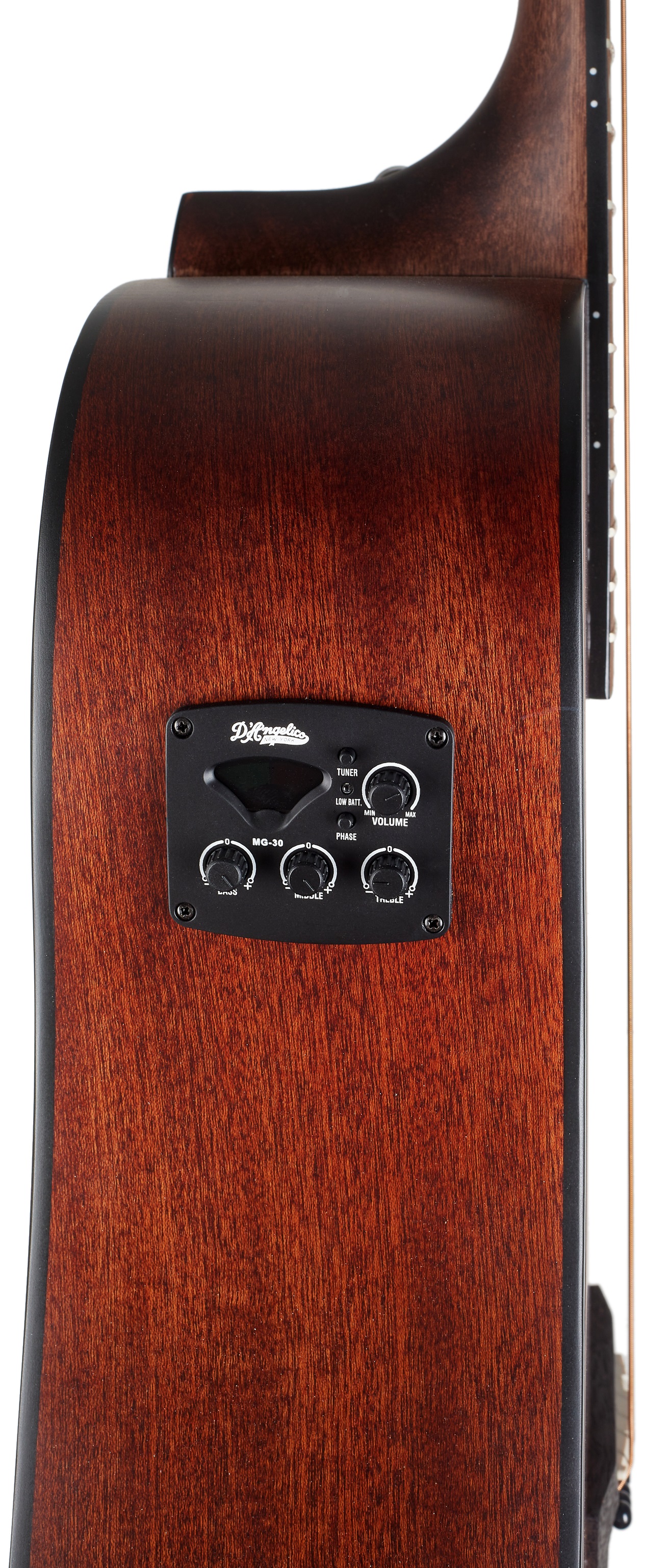 Elektroakustická gitara D'Angelico Premier Lexington LS je základný model obľúbenej elektroakustickej gitary značky v tvare Dreadnought. Telo nástroja je vyrobené z laminovaného mahagónu. Mahagónový krk s profilom "C" je prilepený k hmatníku z tepelne upraveného dreva merbau (torrefied) osadenému dvadsiatimi pražcami typu Medium Jumbo. Orientáciu na jeho povrchu uľahčujú polohové bodky z imitácie perlete. Dobré akustické vlastnosti gitary podporuje redukované rebrovanie X (Scalloped X). Telo gitary vyvažuje