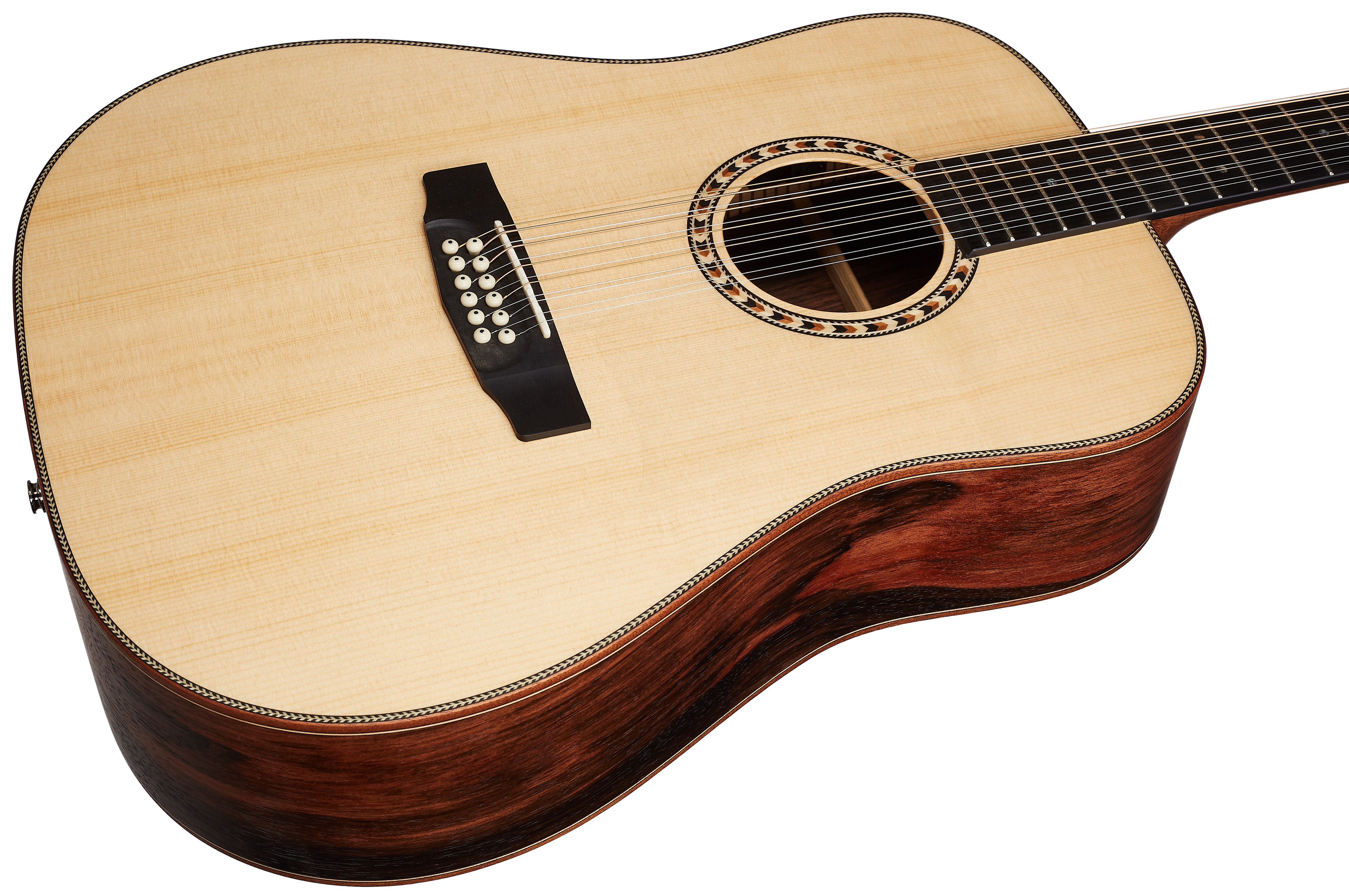 Dvanásťstrunová elektroakustická gitara Dowina Danubius DE-12-S je 12-strunová elektroakustická gitara typu dreadnought. Jej predná doska je vyrobená z masívneho európskeho smreka (švajčiarsky smrek), zadná doska a luby sú z vrstveného exotického ebenového dreva makassar. Prirodzený zvuk nástroja umocňuje povrchová úprava s otvorenými pórmi. Na krk z tvrdého dreva nato, označovaný pre svoje podobné vlastnosti ako "východný mahagón", je prilepený ebonizovaný hmatník. Stabilitu ladenia zaručuje uchytenie strú