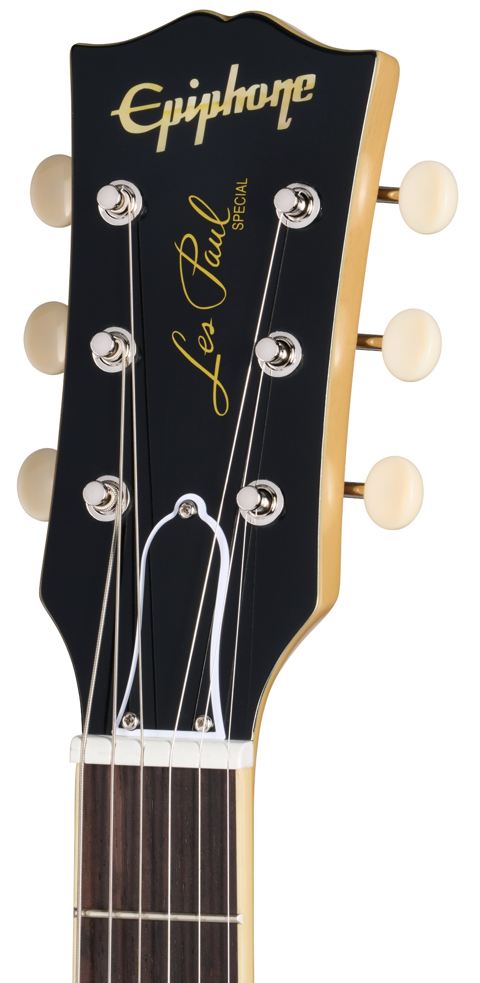 Elektrická gitara Elektrické gitary Epiphone Les Paul sú už desaťročia cenovo dostupnejšou alternatívou originálov s logom Gibson. Gitara 1960 Les Paul Special Double Cut Reissue TV Yellow, vytvorená v spolupráci s Gibson Custom Shop, je poctou modelom Gibson Les Paul Special Double Cut z roku 1960. Telo gitary je vyrobené z mahagónu. K jednodielnemu mahagónovému krku je prilepený palisandrový hmatník osadený dvadsiatimi dvoma Medium Jumbo pražcami. Dobový užší profil krku