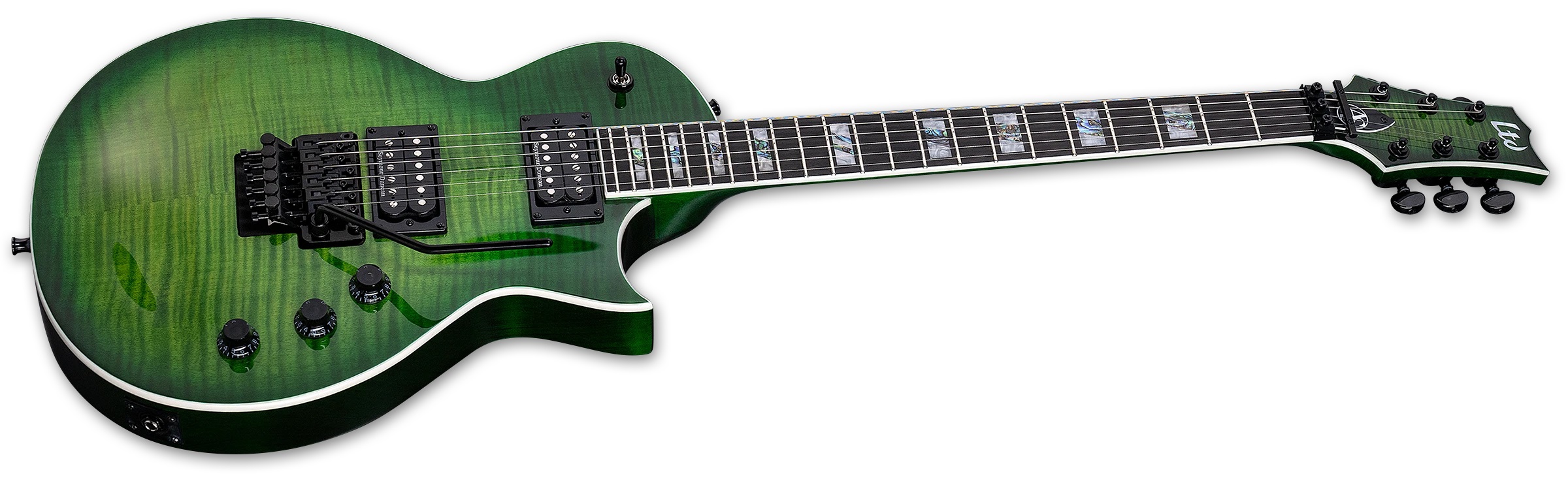 Elektrická gitara Elektrická gitara ESP LTD Alex Skolnick AS-1FR Lime Burst je signature model gitaristu Alexa Skolnicka, ktorý okrem sól a metalových riffov v americkej thrashmetalovej kapele Testament hrá aj vo svojom jazzovom triu Alex Skolnick Trio a ďalších žánrovo rôznorodých projektoch. Mahagónové telo elektrickej gitary zdobí javorová vrchná doska a dyha z fládrovaného javora. Povrchová úprava Lime Burst zvýrazňuje kresbu javorového dreva. Trojdielny javorový krk s konštrukciou set-thru, teda krkom