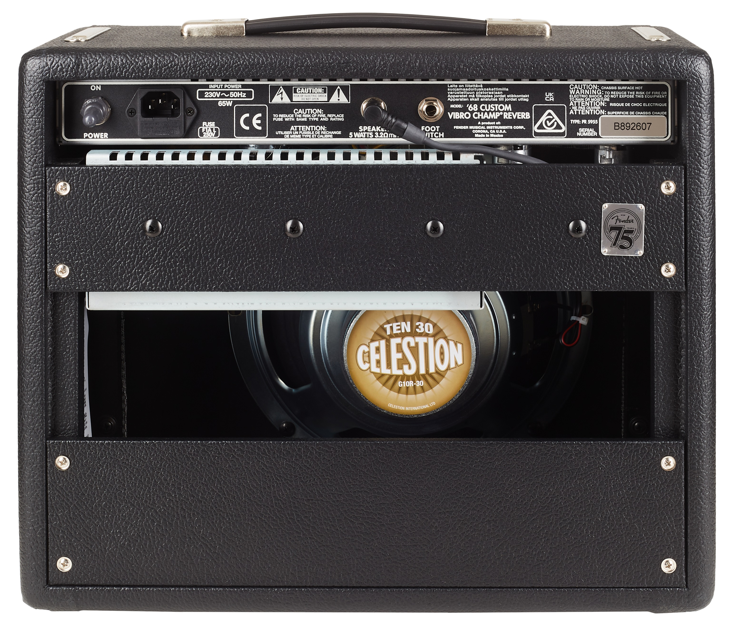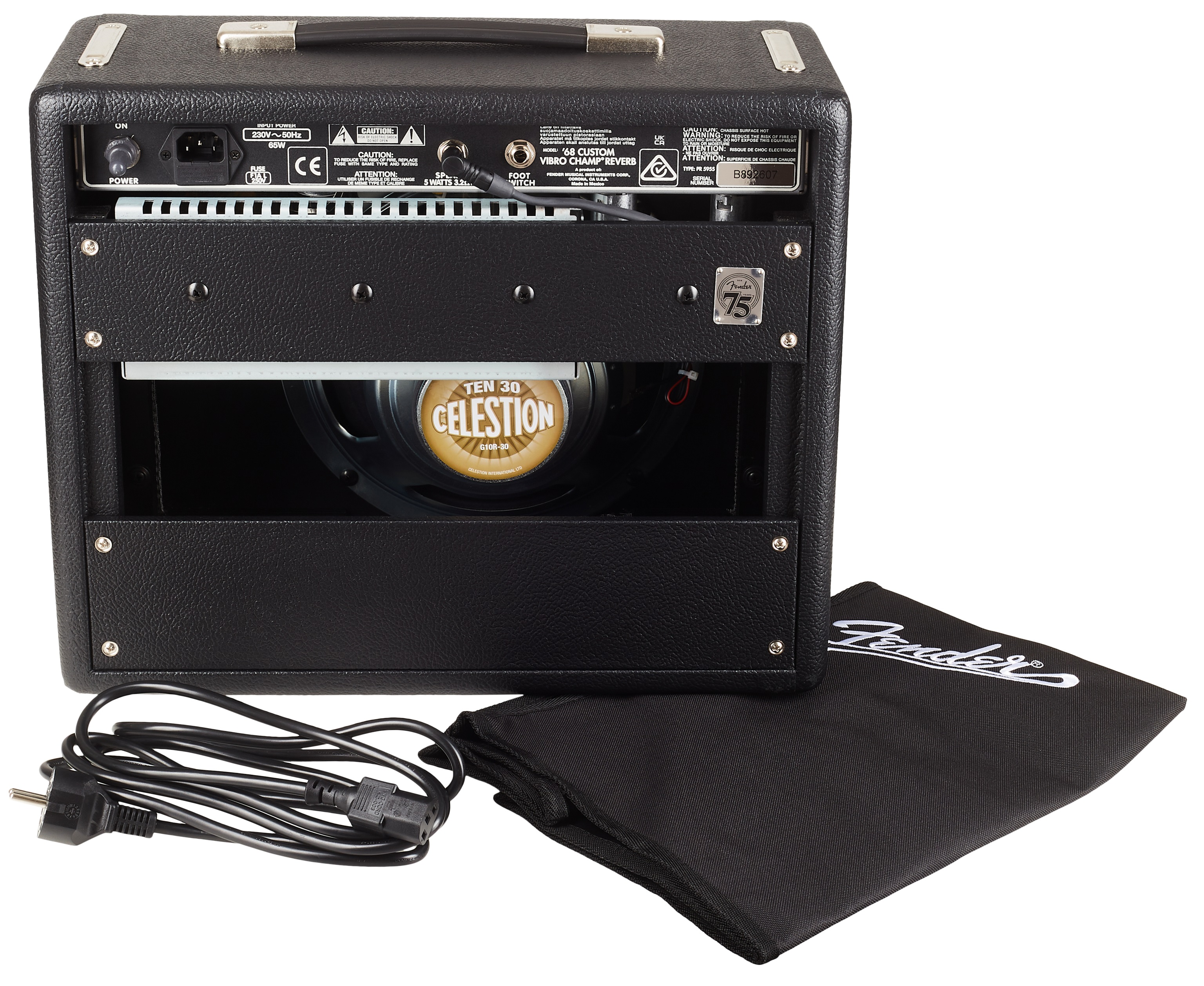 Gitarové lampové kombo Pôvodný model jednokanálového lampového gitarového komba Fender Vibro Champ bol medzi hudobníkmi obľúbený pre svoje slávne tremolo Fender a skvelý lampový zvuk pri rozumnej hlasitosti. Aktuálny model Fender '68 Custom Vibro Champ Reverb pridáva k tomuto základu zabudovaný efekt hall reverb a 10-palcový reproduktor Celestion TEN 30 na zvýraznenie spodných basových frekvencií. Vďaka tomu je ideálny na nahrávanie v domácom štúdiu, skúšanie s kapelou alebo na akcie v menších kluboch. Pred