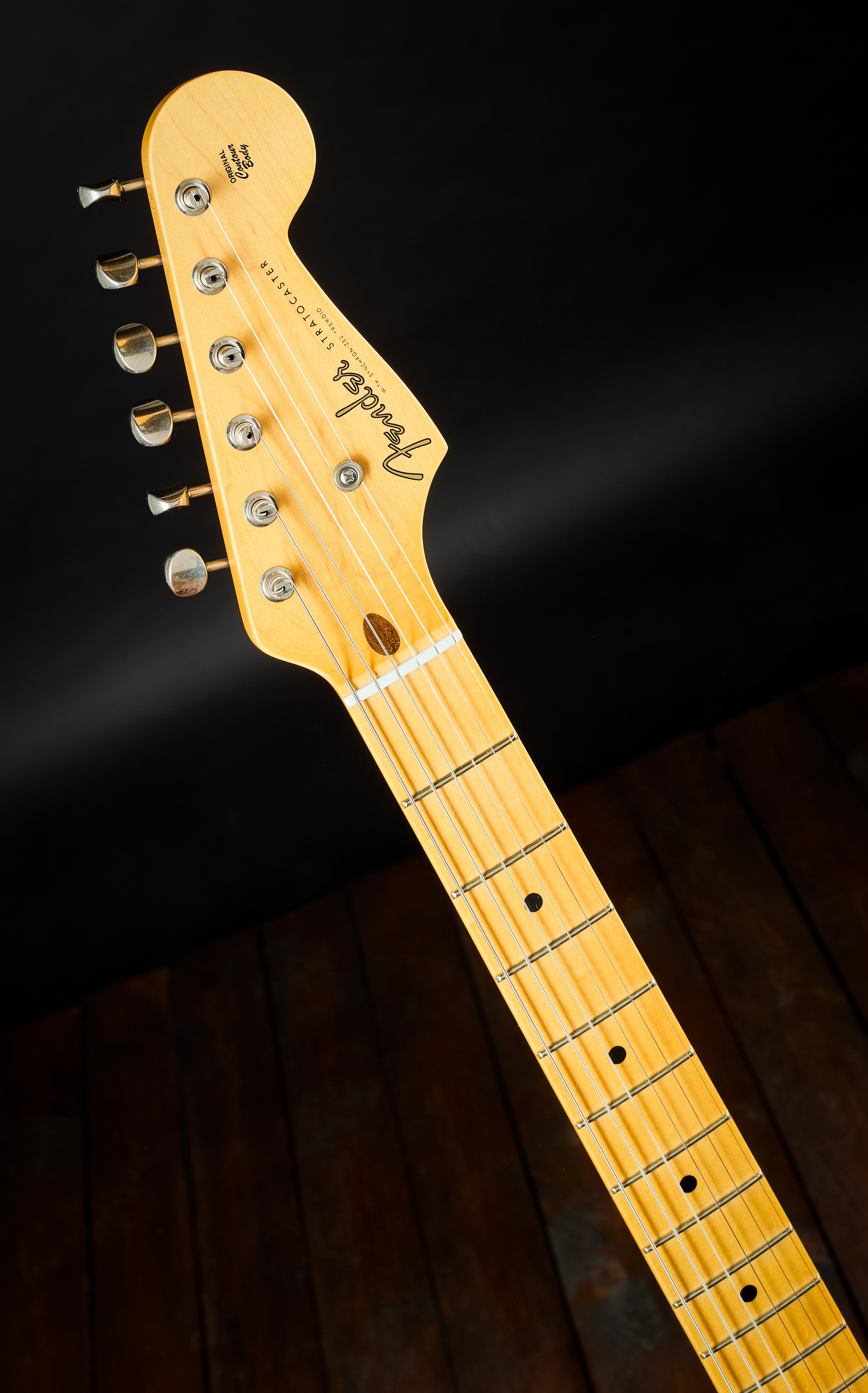 Elektrická gitara Prakticky nová gitara, iba testovaná, vyrobená v roku 2023, po 1. majiteľovi. Ale vyrobená tak, ako keby ste po 70 rokoch vytiahli zo skrine starý Fender, ktorý na túto chvíľu len čakal. Tento Stratocaster z roku 1955 v prevedení Deluxe Closet Classic (LCC), ktorý už vyšiel z Fender Custom Shopu, je jemne patinovaný nástroj s drobnými falošnými prasklinami, ktoré spolu s použitými materiálmi a dobovými snímačmi navodzujú atmosféru 50. rokov minulého storočia, kedy vznikol tento legendárny
