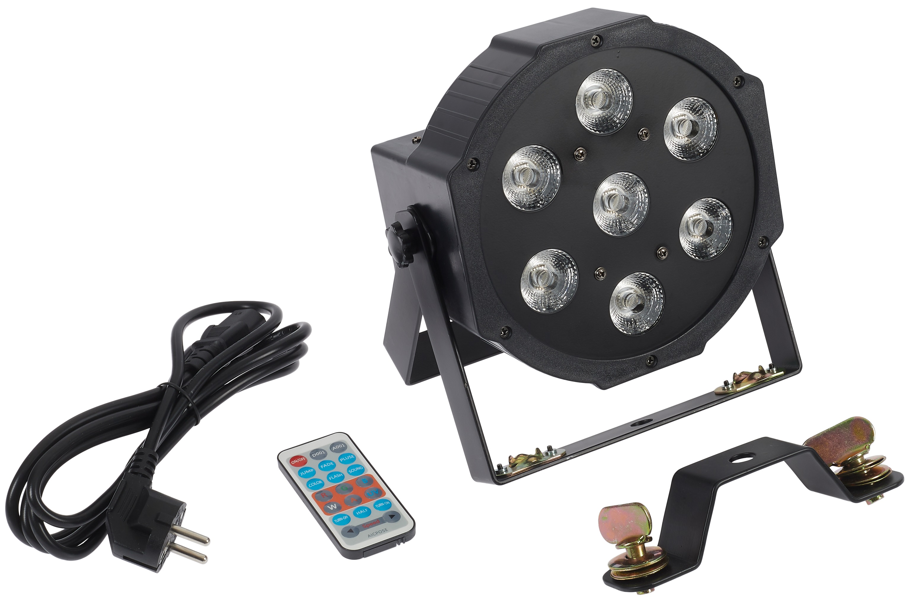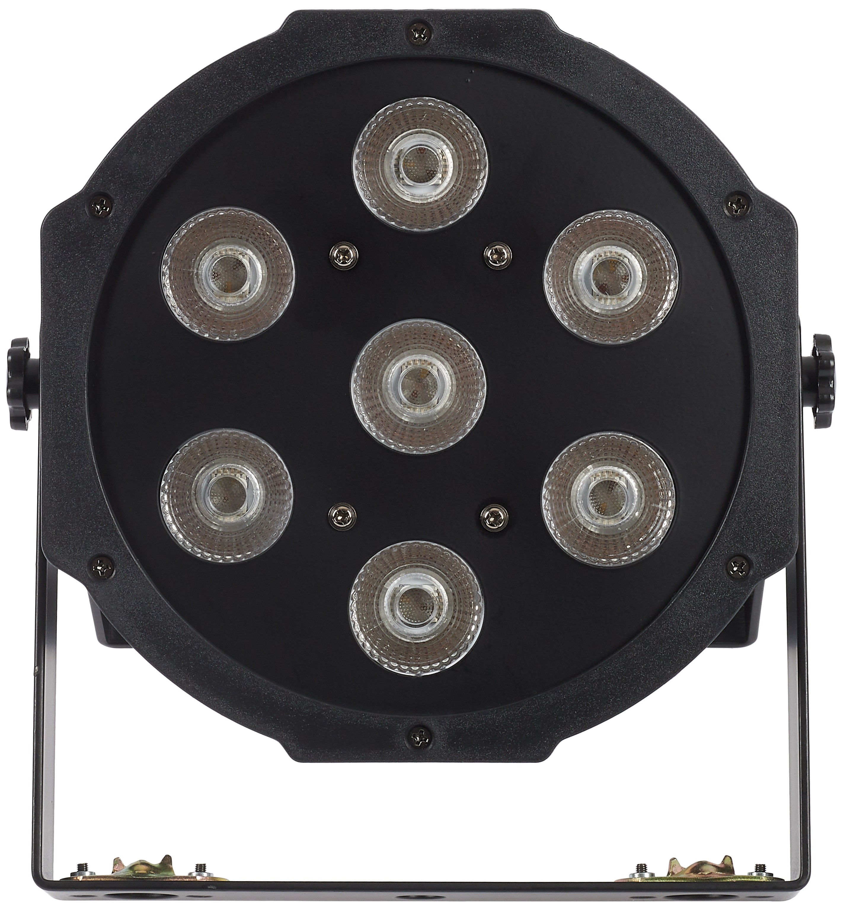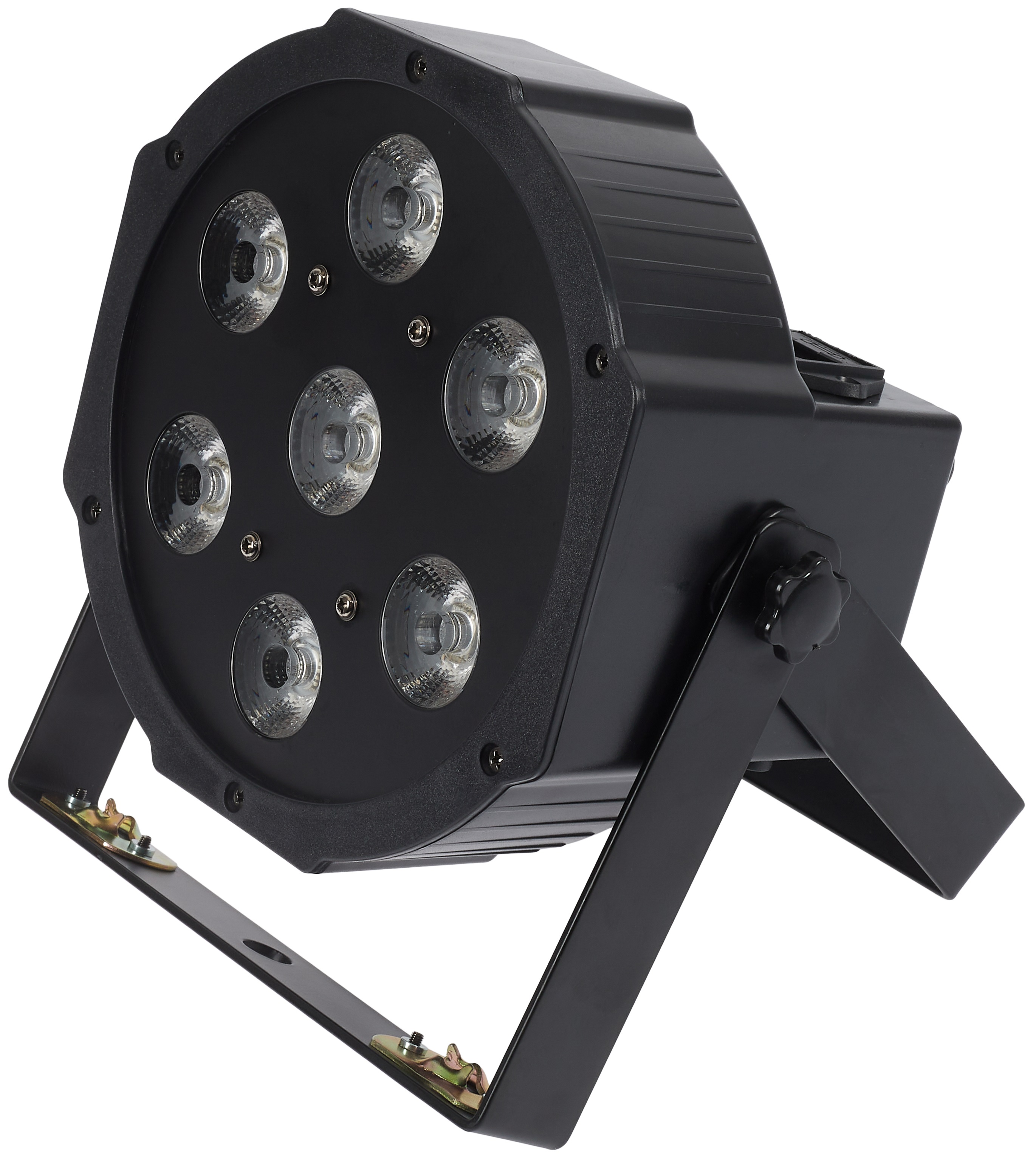 LED PAR reflektor LED PAR 56 7x15W RGBWA+UV 6v1 od spoločnosti Flash je kompaktný a ľahký, ale prekvapivo výkonný LED PAR reflektor, ktorý je skvelý najmä ako mobilné zariadenie na osvetlenie na cestách a pre hudobníkov. Umožní vám spoľahlivo osvetliť malé hudobné podujatie, svadbu alebo firemnú akciu. Je ideálnou voľbou pre všetkých osvetľovačov, ktorí sa nechcú obmedzovať v miešaní farieb – jeho svetelným zdrojom je sedem 15W RGBWA + UV (6v1) LED diód, kt