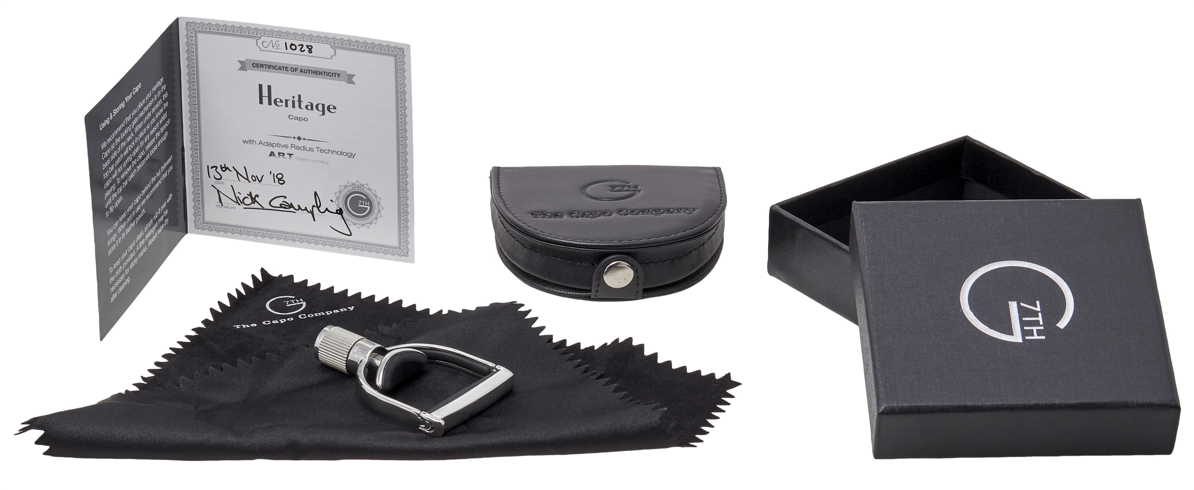 Kapodaster Anglická spoločnosť G7th ponúka kapodastre, ktoré nielen skvele vyzerajú, ale predovšetkým majú praktické ovládanie, kvalitné komponenty a precízne spracovanie. Výsledkom sú výrobky, ktoré oslnia dizajnom aj funkčnými vlastnosťami. Kapodastre Heritage spájajú tradíciu s inovatívnymi prístupmi. Ich ručne leštená konštrukcia z nehrdzavejúcej ocele je vybavená technológiou A.R.T., Adaptive Radius Technology, ktorá umožňuje kapodastrom prispôsobiť sa nástrojom s akoukoľvek hrúbkou a profilom krku. Ča