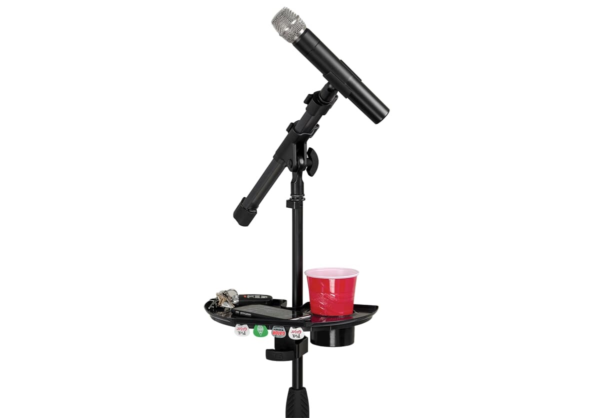 Doplnky pre stojany Príslušenstvo mikrofónového stojana GFW-MICACCTRAY obsahuje odkladací pult na kvalitné príslušenstvo, ako sú kapodastre alebo ladičky, držiak na nápoje a integrovaný držiak až na päť trsátok. GFW-MICACCTRAY sa dá pripevniť aj na hardvér bicích nástrojov.