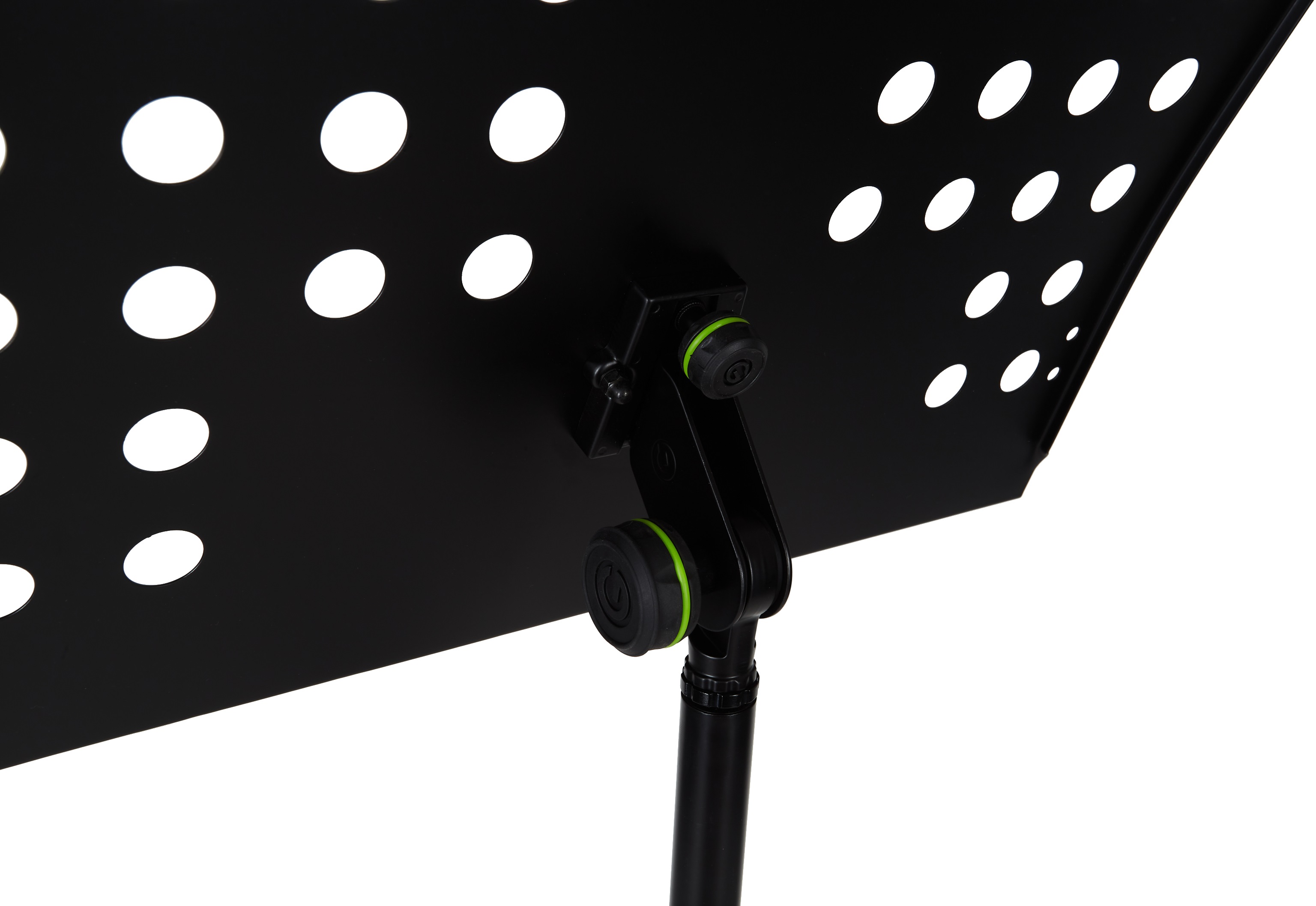 Notový stojan Tento stojan na noty od spoločnosti Gravity má robustnú, pevnú konštrukciu so stabilnou trojnožkou a perforovaným stojanom na noty s rozmermi 47,5 x 34 cm. Stojan s nastaviteľnou výškou od 66 do 120 cm využijete vy aj vaše deti. Všetky ergonomicky tvarované ovládacie prvky (svorky) sú vyrobené z ABS/nylonu a potiahnuté termoplastickým materiálom na jednoduché, rýchle a plynulé nastavenie. Manipulácia so stojanom je v tomto prípade otázkou niekoľkých sekúnd a navyše sa môžete zaobísť bez zdĺhav