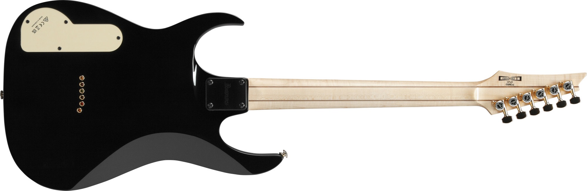 Elektrická gitara Elektrická gitara Ibanez PGM50-BK je signature modelom slávneho gitarového mága Paula Gilberta. Telo gitary v prevedení Super ST so simulovanými F výrezmi je vyrobené z lipového dreva. Päťdielny krk z javora a orecha s vlastným profilom PGM je pripevnený k palisandrovému hmatníku osadenému dvadsiatimi dvoma pražcami veľkosti Medium. Upravené hrany pražcov poskytujú gitaristom väčší komfort pri hre (úprava hrán Premium) a polohové bodky uľahčujú orientáciu na hmatníku. Kombinácia troch pasí