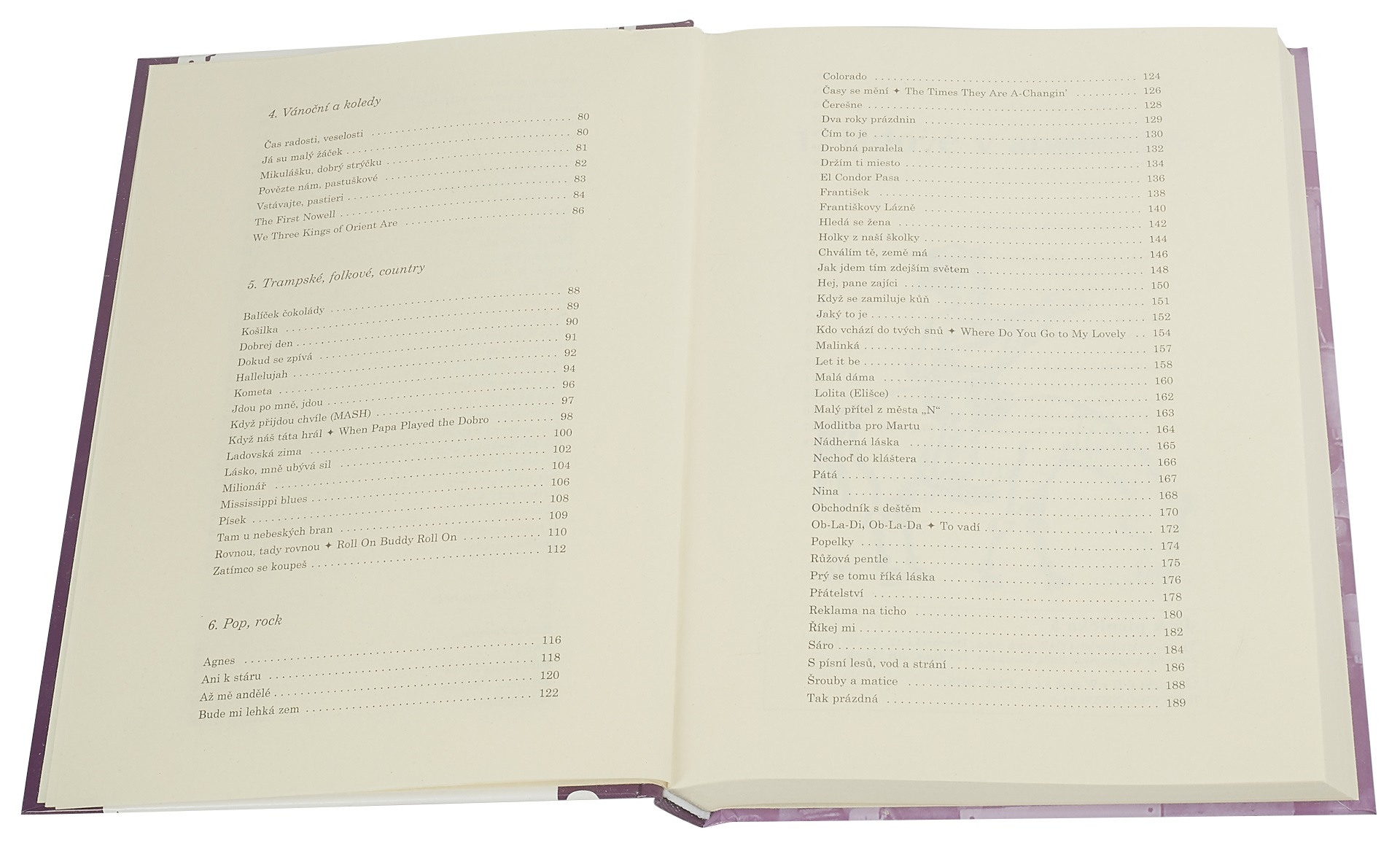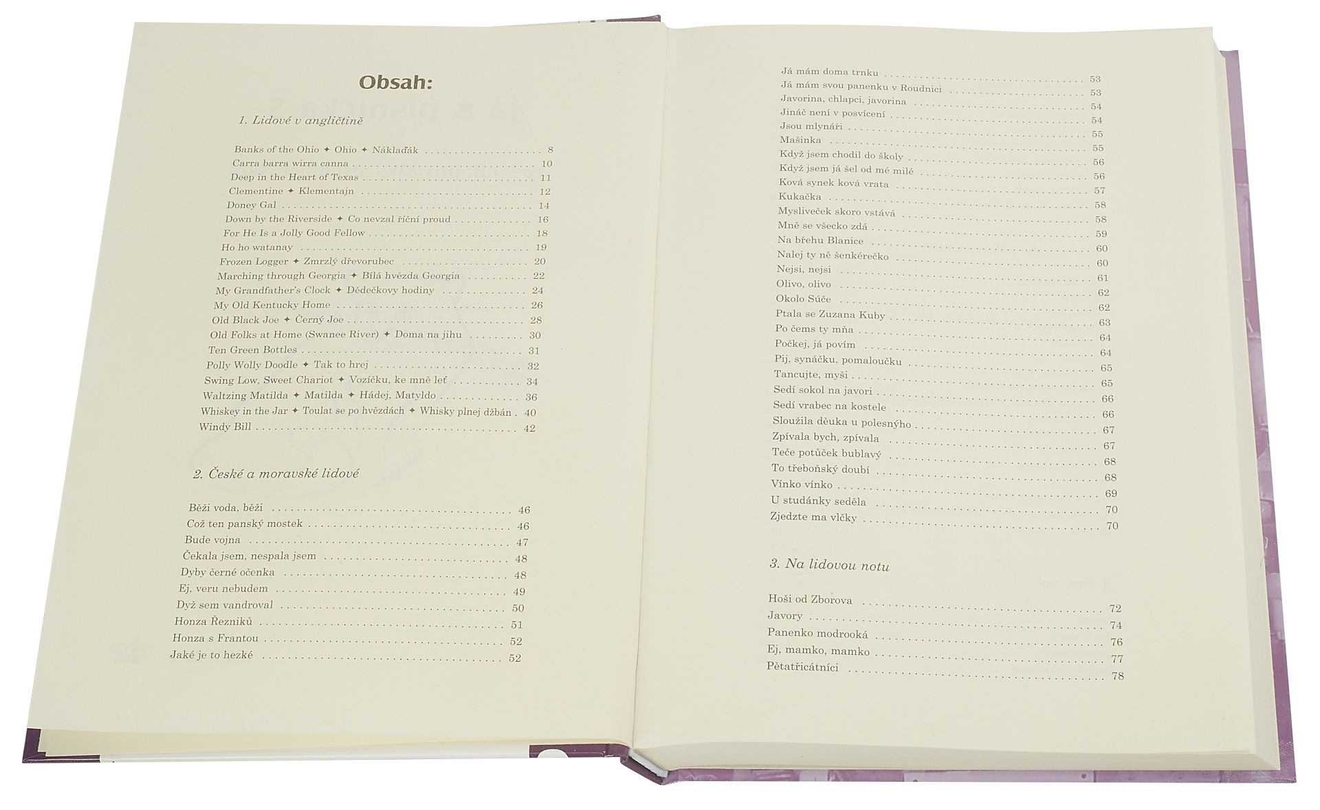 Spevník Nový zväzok opäť obsahuje mnoho piesní z nasledujúcich žánrov: České a moravské ľudové piesne Ľudové piesne v angličtine Ľudové melódie Vianočné koledy Tramp-folk-country P……Další informace