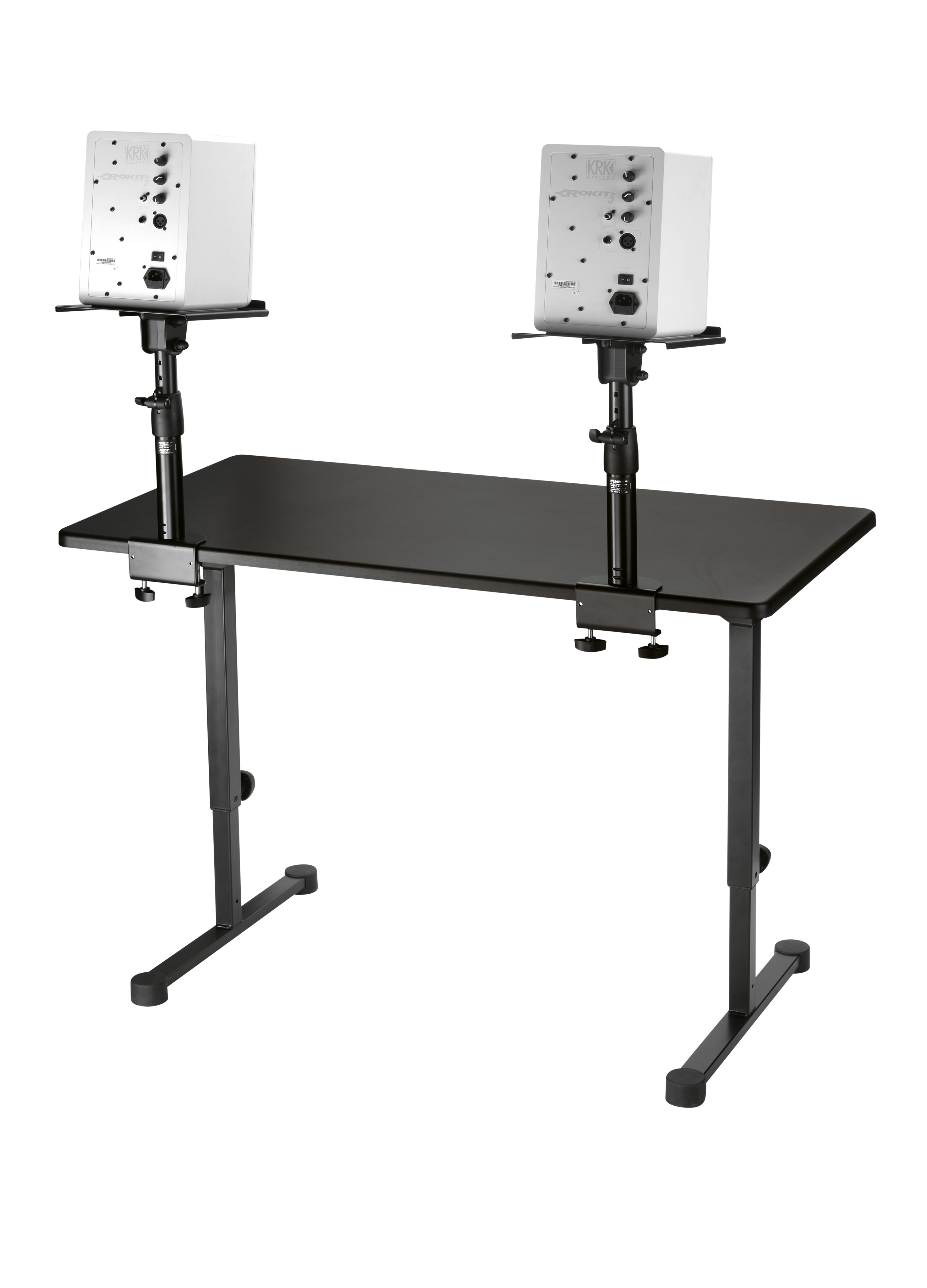 DJ nábytok Profesionálny DJ stôl vhodný na živé vystúpenia, do štúdia alebo skúšobne. Pracovná plocha je vyrobená z preglejky a má rozmery 1170 x 600 mm, takže sa na ňu ľahko zmestí DJ mixážny pult, notebook a ďalšie vybavenie. Výškovo nastaviteľná konštrukcia je potom vyrobená z odolnej ocele. Celý stôl sa v okamihu rozloží do veľmi kompaktných rozmerov, ktoré sú ideálne na prepravu medzi produkciami.