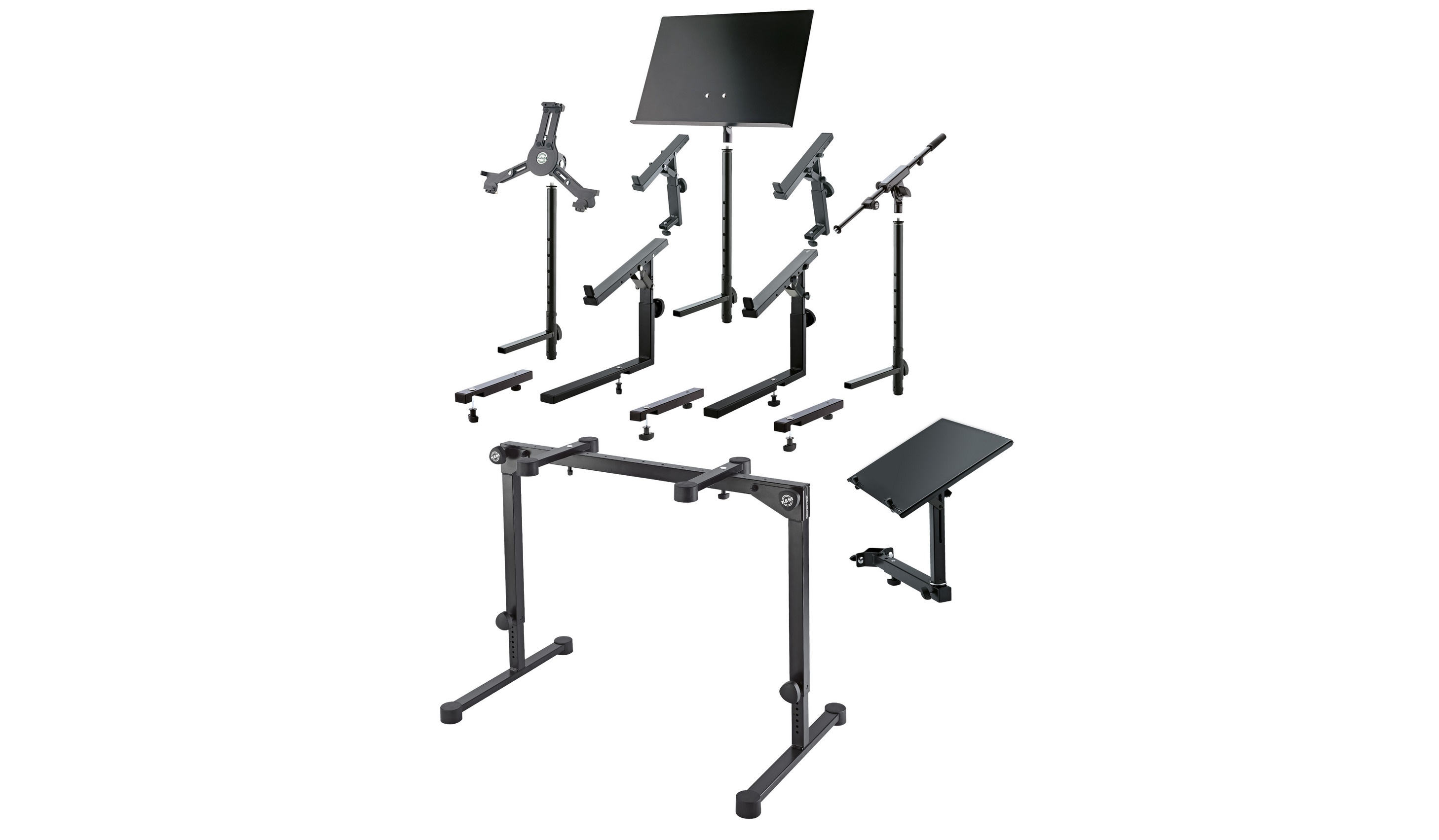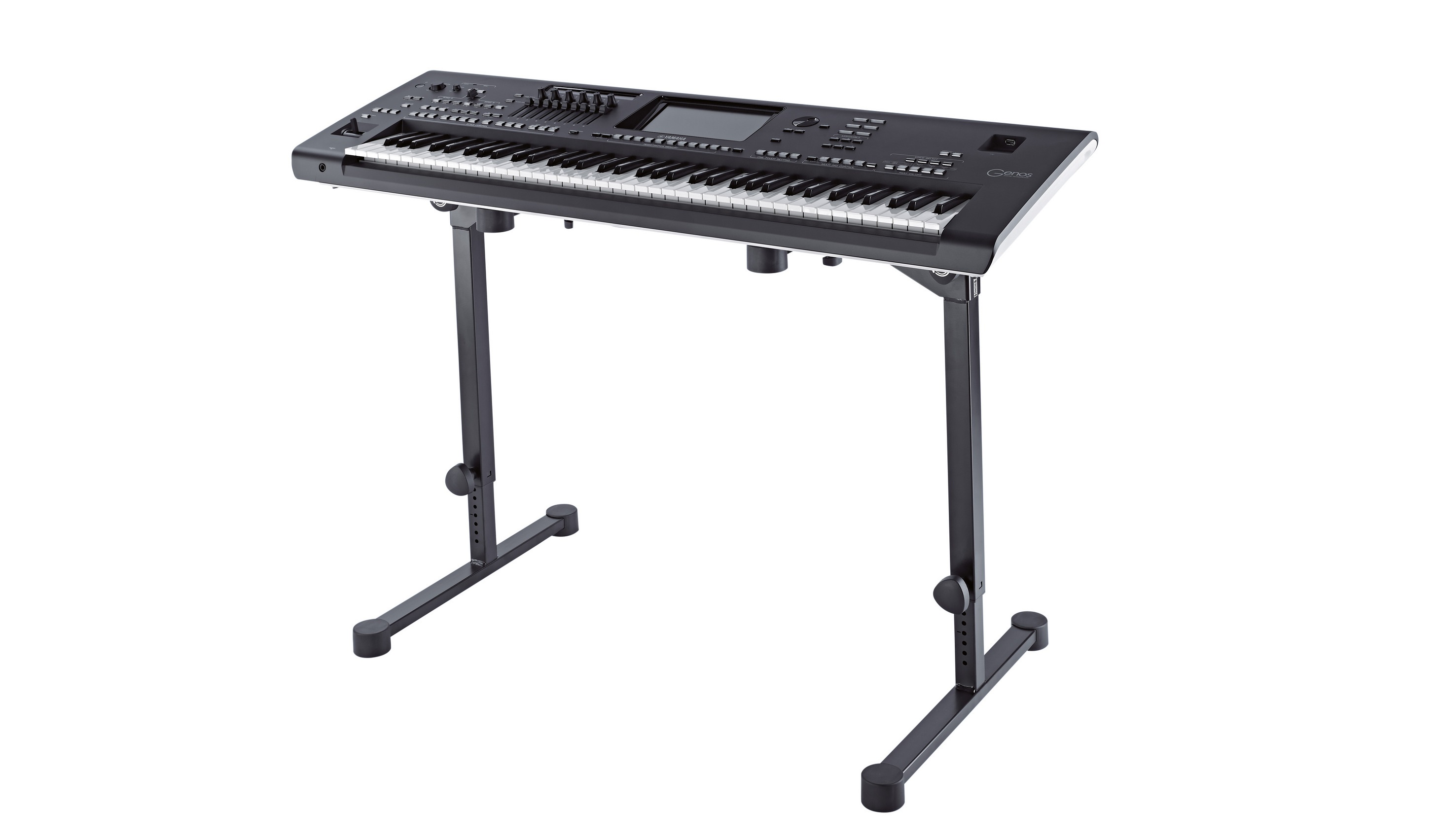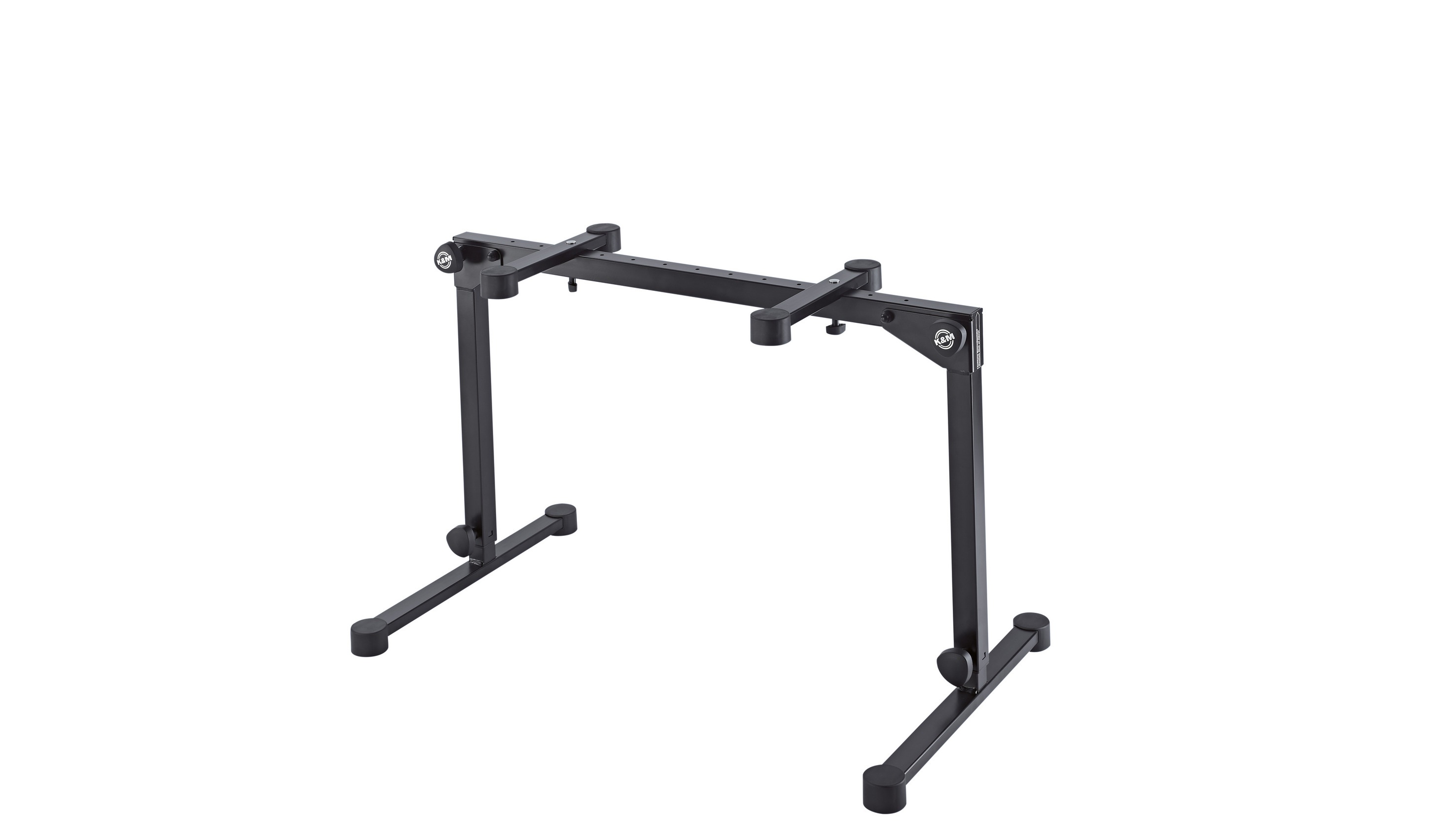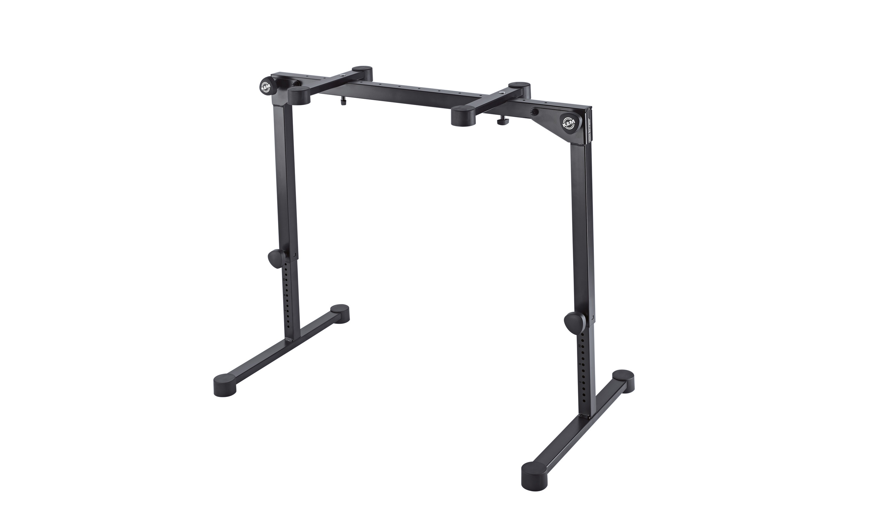 Klávesový stojan Kompaktný klávesový stojan K&M 18820 s veľkými, robustnými nohami zaručuje maximálnu bezpečnosť pre váš nástroj na pódiu, v nahrávacom štúdiu alebo v skúšobni. Výšku stojana môžete ľahko nastaviť pomocou dvojice pevných závitov, aby bolo hranie na klávesoch čo najpohodlnejšie. Horné konzoly sú nastaviteľné a ich rozpätie môžete prispôsobiť veľkosti kľúčov (122 – 729 mm). Na stojan možno umiestniť ďalšie držiaky a príslušenstvo K&M, aby ste dosiahli maximálnu flexibilitu. K dispozíci