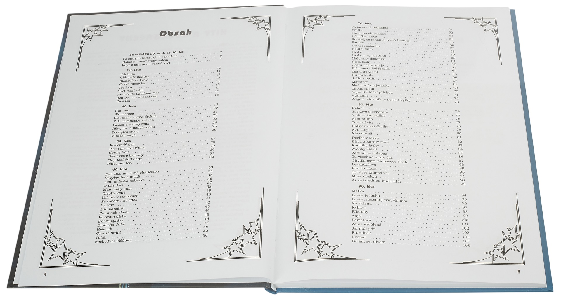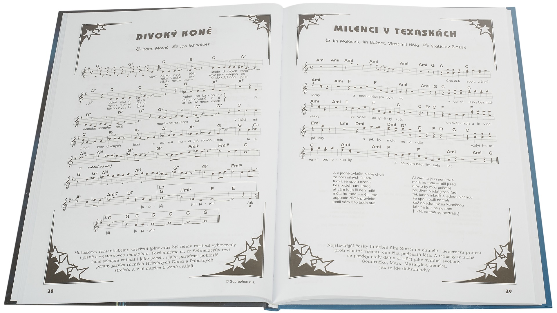 Spevník České a slovenské hity 20. storočia – 1. časť, A4, viazaná, 120 strán, 100 piesní. Prvá stovka najznámejších populárnych piesní od začiatku storočia po súčasnosť (Po starých zámeckých schodech, Slunečnice, Ach, ta láska nebeská, Bludička Julie, Kávu si osladím, Levandulová, Rybitví, František a ďalšie) s vloženým grafom s názvom „Vývoj jazzu a modernej populárnej hudby“.