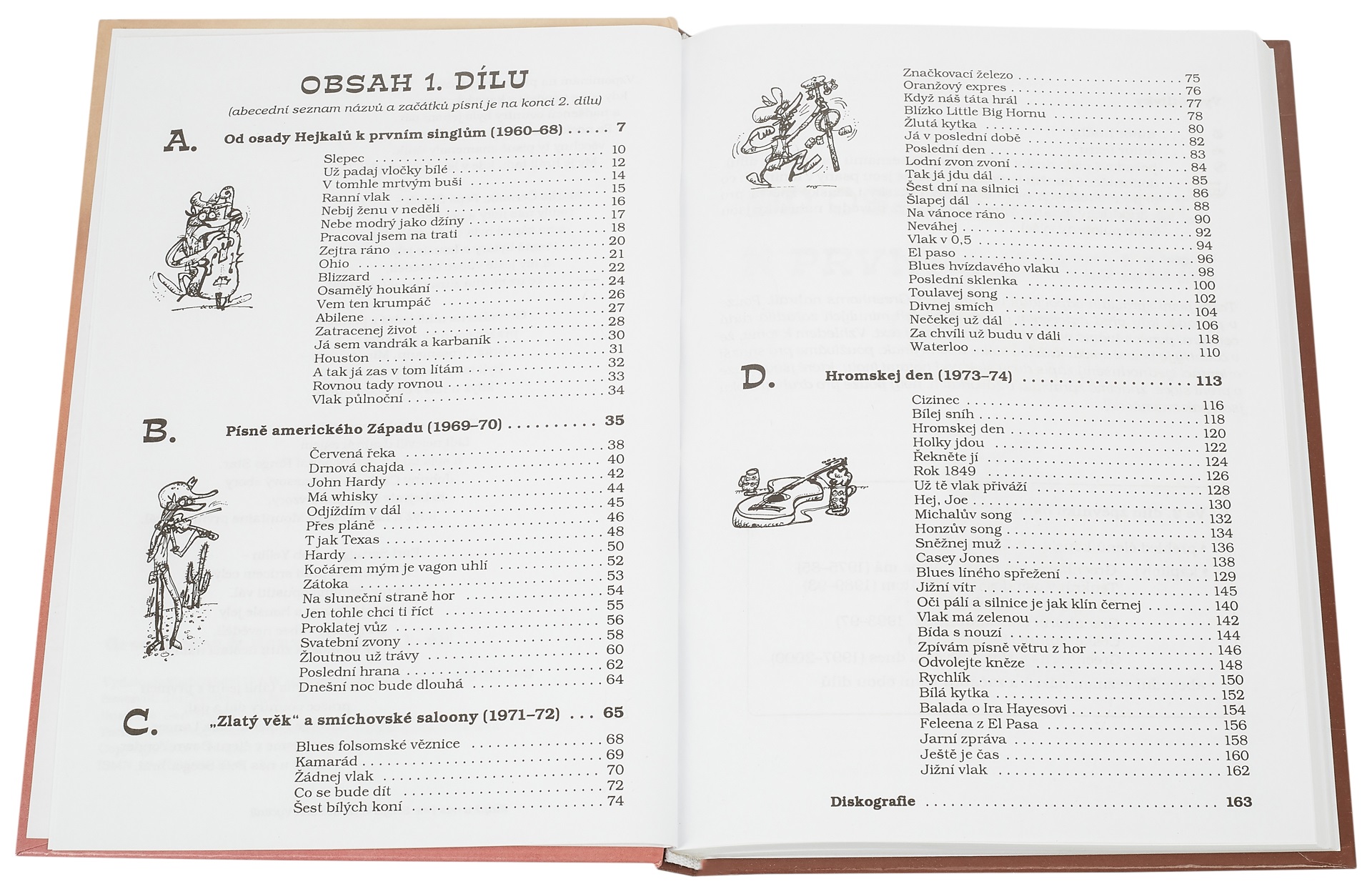 Spevník Najkomplexnejší spevník celého diela našej najznámejšej country kapely; časť 1 pokrýva obdobie od 60. rokov do roku 1974 – „zlatú éru“ Greenhorns (Nebe modrý jako džíny, Červená řeka, Má whisky, Blues folsomské věznice, Na vánoce ráno, Hromskej den, Honzův song a ďalšie).