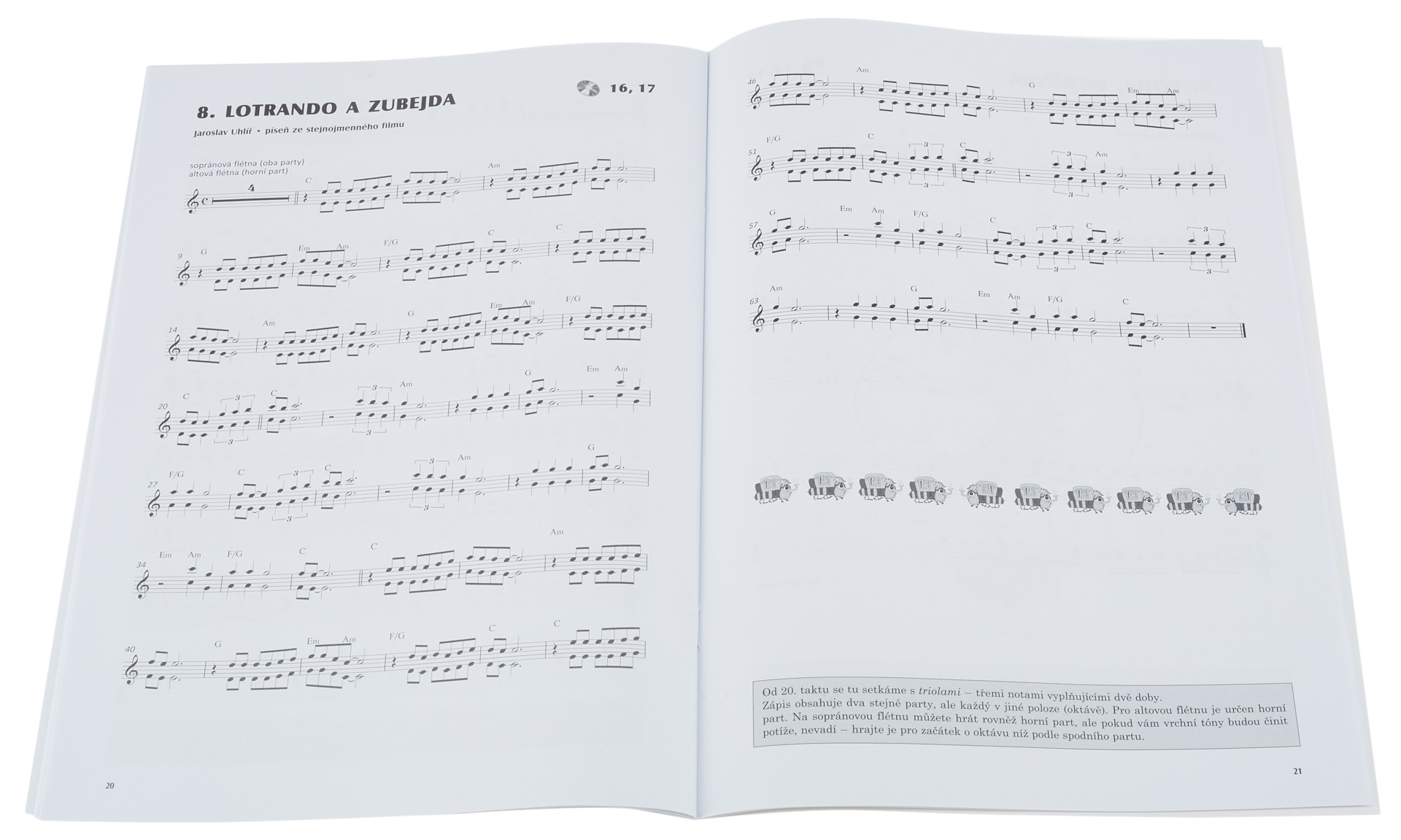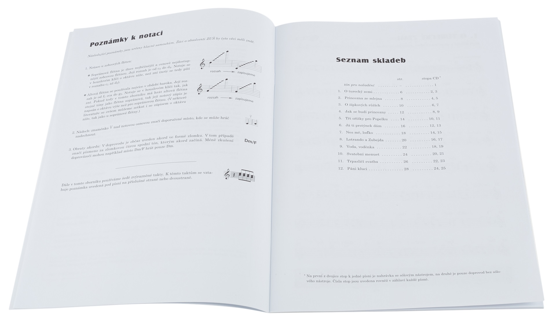 Škola hry na zobcovej flaute Publikácia obsahuje dvanásť melódií z rozprávok pre sopránovú a altovú flautu s doprovodom na CD a akordovými symbolmi pre gitaru, klavír alebo klávesový nástroj. Notový záznam slúži ako doplnok k učebným osnovám hudobných škôl, ale je vhodný aj pre základné školy, hudobné krúžky a samoukov.