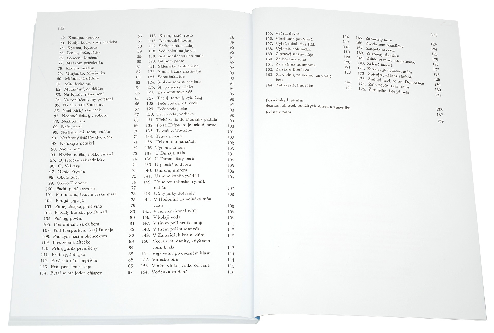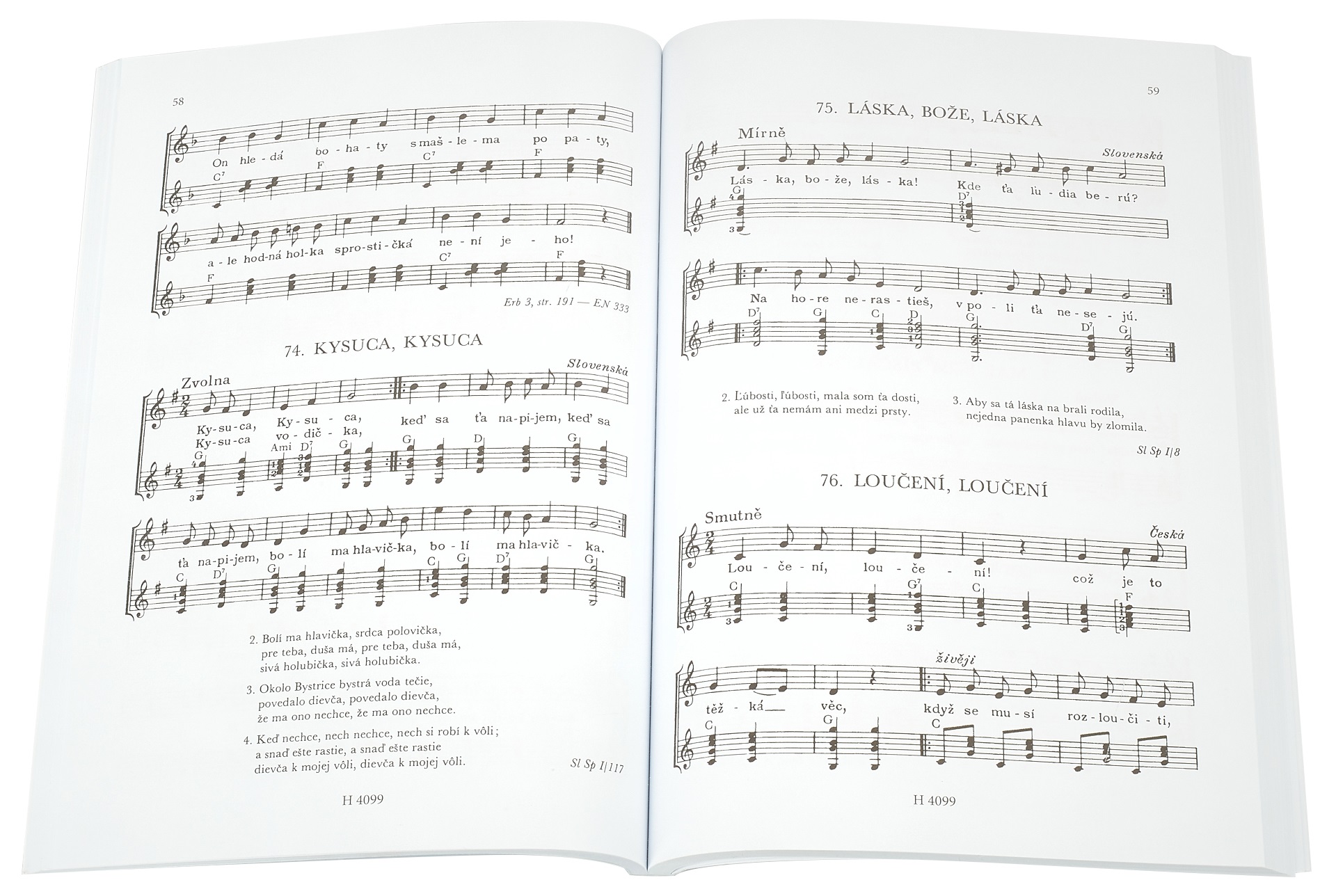 Spevník Národná spevnica obsahuje ľudové piesne z Čiech, Moravy a Slovenska, doplnené jednoduchým klavírnym sprievodom a akordovými symbolmi pre gitaru. Obsah: A ja mám Marínu A ja sama A ja som chlapec z Polánky A ja som taká divoká dievčina A vy, páni hudobníci Ach, ona tu nie je, nie je Ach, páni, vy Andulka Šafářová Anička, malá dušička, kde si bola Beskydy, Beskydy Nech ste prekliati, vy mladí muži Boleraz, boleraz Čo sa stalo dávno Čo to tam šuští Čerešne, čerešne Čierna vlna na bielom baránkovi Čiern