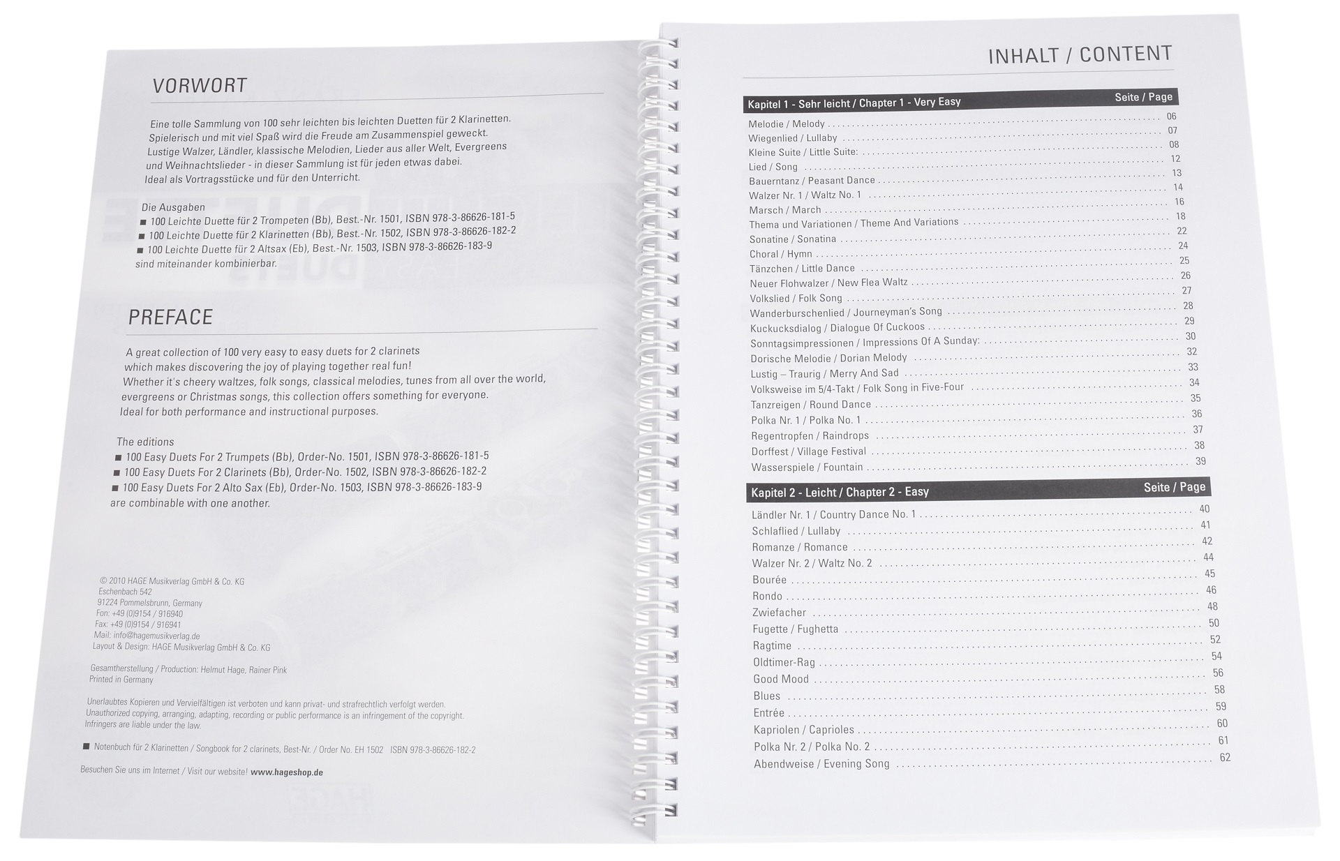 Noty pre klarinet Táto publikácia obsahuje výber 100 duet v ľahkých úpravách pre dva klarinety. Valčíky, ľudové piesne, melódie z klasickej hudby, evergreeny z celého sveta a vianočné piesne/koliedky – každý si tu nájde niečo pre seba. Úpravy skladieb sú vhodné na obohatenie vyučovacích hodín a na vystúpenie. Vydania pre trúbku (Bb), klarinet (Bb), altový saxofón (Eb) a trombón (C) sa dajú skombinovať do väčšieho súboru.
