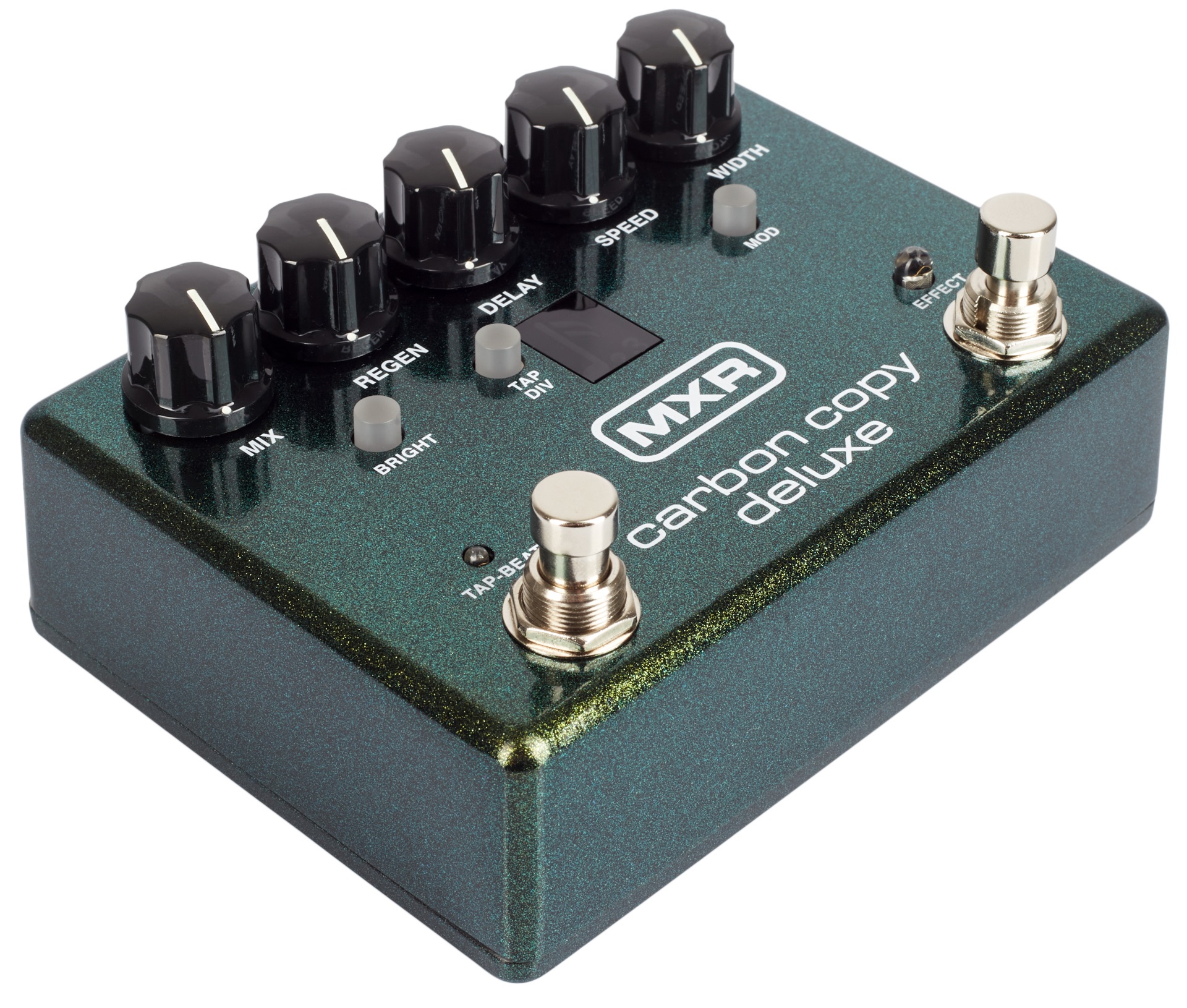 Gitarový efekt Carbon Copy Deluxe je rozšírená verzia obľúbeného analógového delayu Dunlop MXR Carbon Copy. Ponúka maximálny čas oneskorenia až 1200 milisekúnd, ovládanie externým expression pedálom a pridanú funkciu Tap Tempo. Ovláda sa nožným spínačom Tap-Beat a tlačidlom Tap-Division s frázovaním v bodkovaných osminách, osminových notách, triolách a šestnástinách. Hlavné potenciometre určujú pomer čistého signálu k modulácii efektu, počet opakovaní a čas oneskorenia. Ovládače Speed a Width nastavujú char