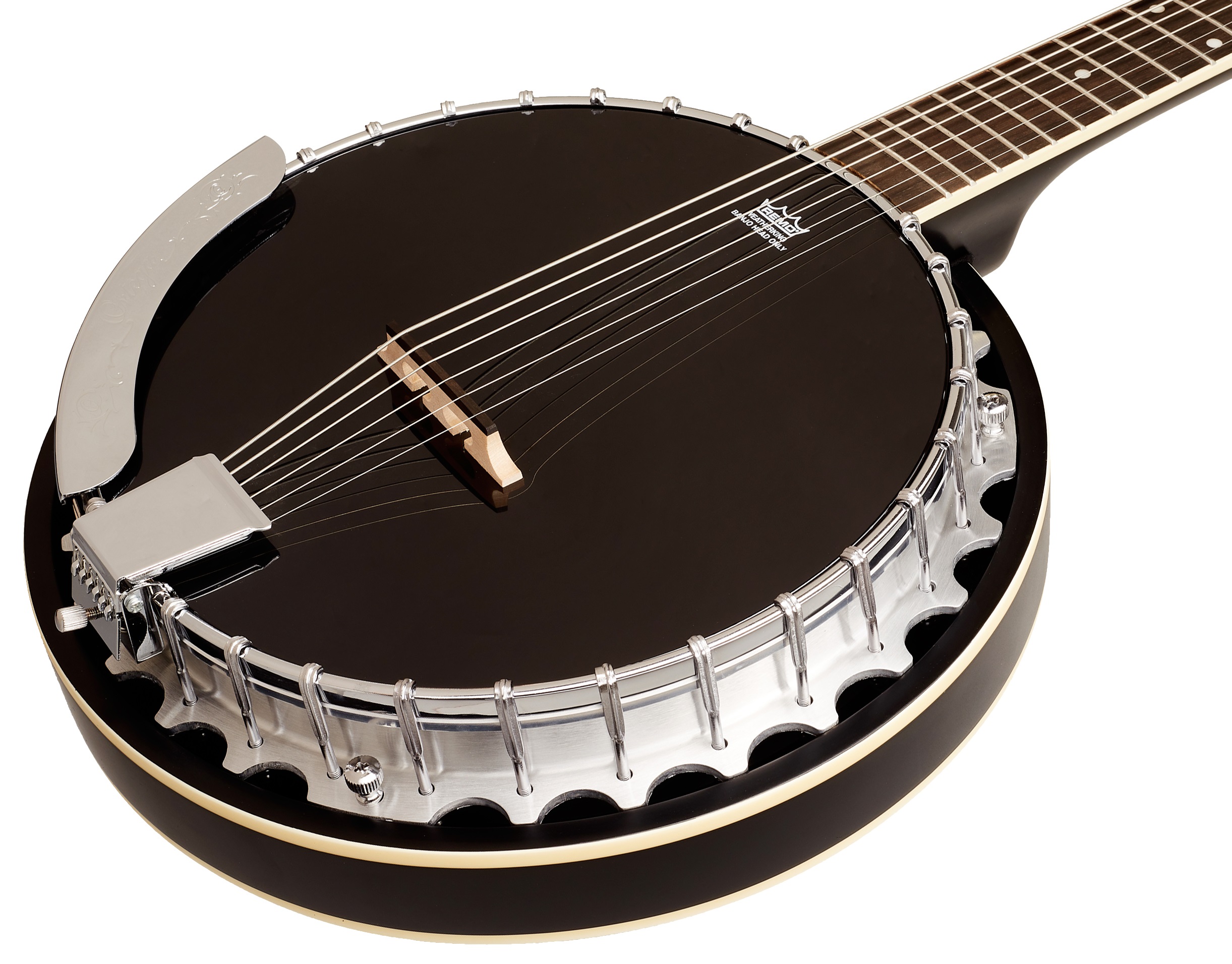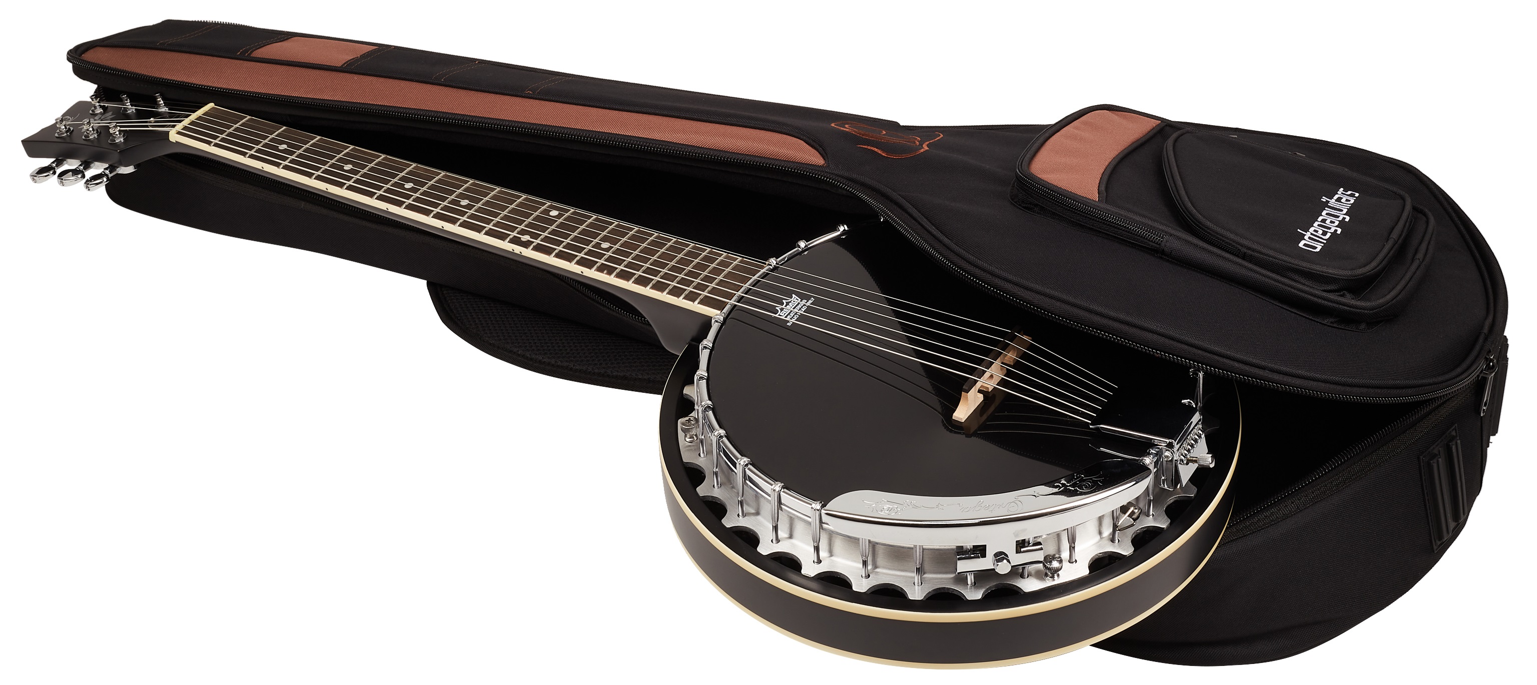 Bendžo Banjo Ortega z radu Raven ponúka svieži, moderný dizajn v podobe štýlovej pololesklej povrchovej úpravy v čiernej farbe, chrómového kovania a gravírovanej ramennej opierky. OBJ350-SBK je šesťstrunové banjo typu closed back, t. j. s uzavretou zadnou doskou – mahagónovým rezonátorom, vďaka čomu dokáže vyprodukovať dostatočne silný zvuk. Má mahagónový krk, ovangkolový hmatník osadený polohovými bodkami pre ľahšiu orientáciu, hliníkové telo a čierny lem Remo. Struny sú osadené chrómovými Die-Cast ladiaci