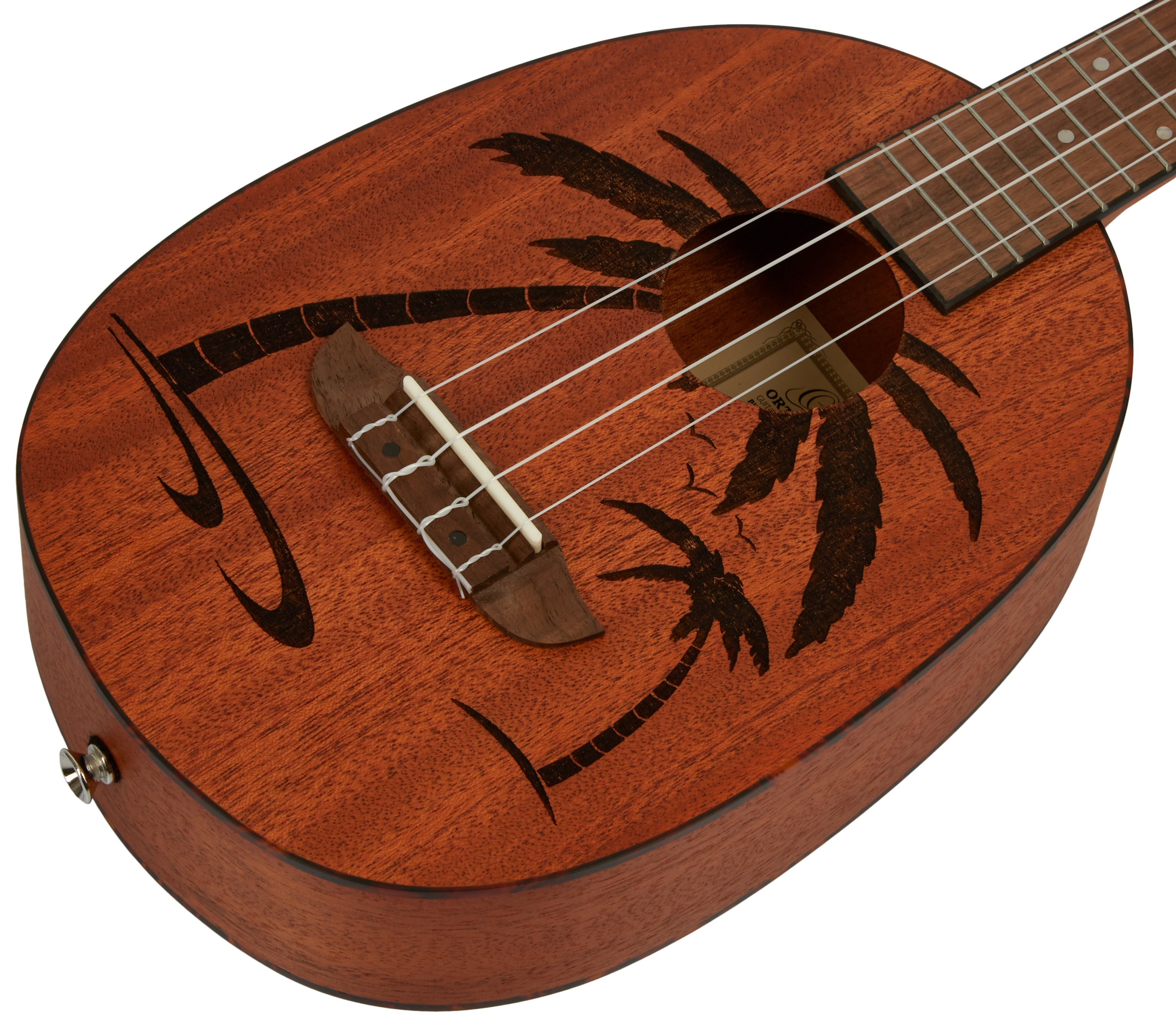 Akustické ukulele Séria Ortega Pineapple sa vyznačuje "ananásovým" tvarom tela, ktoré má väčší objem ako štandardné ukulele, viac rezonuje, a preto ponúka hlasnejší zvuk. Telo ukulele RUPA5MM je vyrobené z preglejky sapele. Predná doska je zdobená laserovým gravírovaním, telo je obklopené ABS lištou. Mahagónový krk je osadený orechovým hmatníkom s osemnástimi pražcami a polohovacie bodky uľahčujú orientáciu. Struny sú osadené v orechovom hmatníku a uzavretých ladiacich mechanikách gitarového typu (Die-Cast)