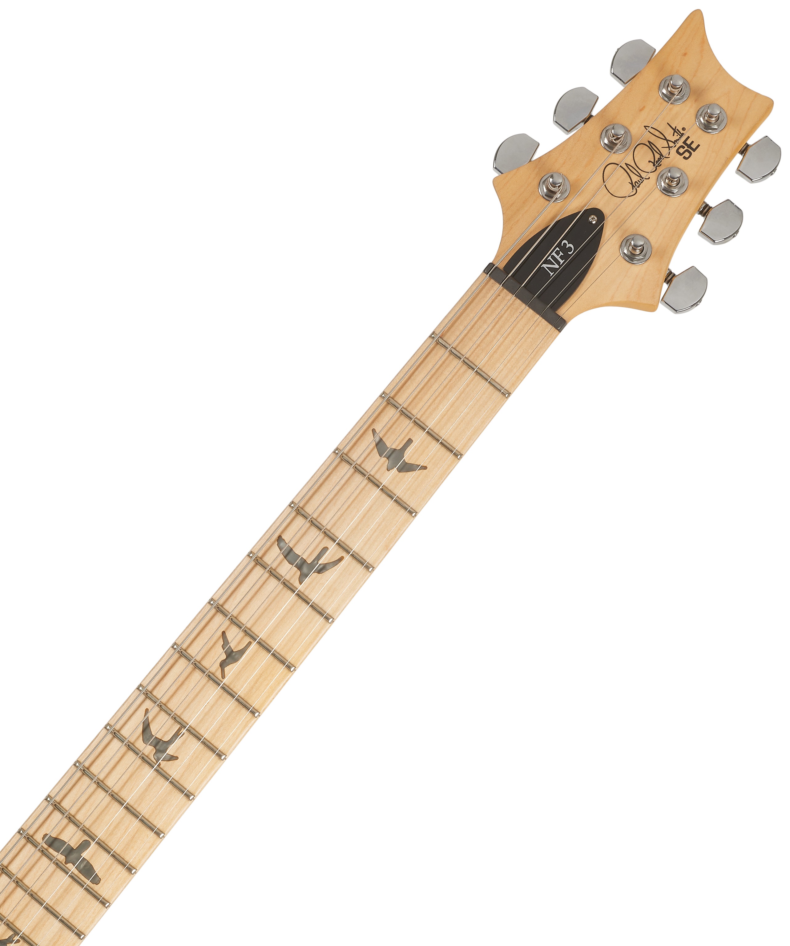 Elektrická gitara Elektrická gitara PRS SE NF3 z cenovo dostupnejšej série SE ponúka originálny dizajn tela PRS s dvoma výrezmi a kvalitu vyhotovenia, ktorá zodpovedá povesti značky. Ide o zvukovo všestranné a spoľahlivé nástroje, ktoré oceníte na koncertoch a pri štúdiovej práci a v žánroch ako rock, pop, funk, blues, country a jazz. Telo nástroja SE NF3 IM – Ice Blue Metallic je vyrobené z topoľa. Skrutkovaný javorový krk ponúka profil Wide Thin a plochu javorového hmatníka rozdeľuje dvadsaťdva pražcov. O