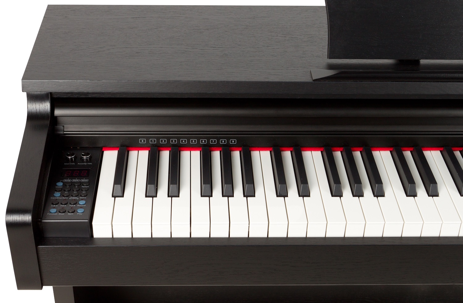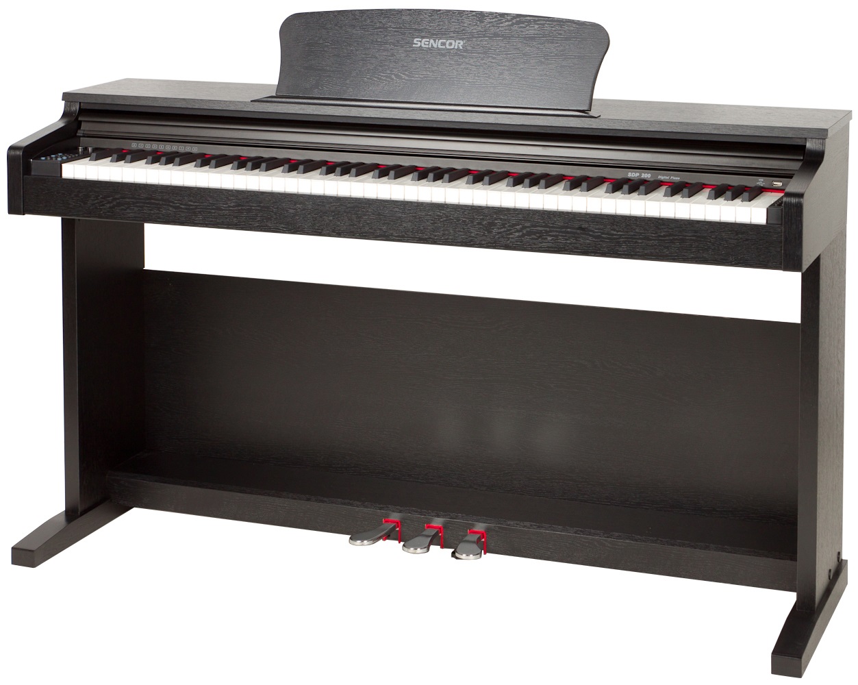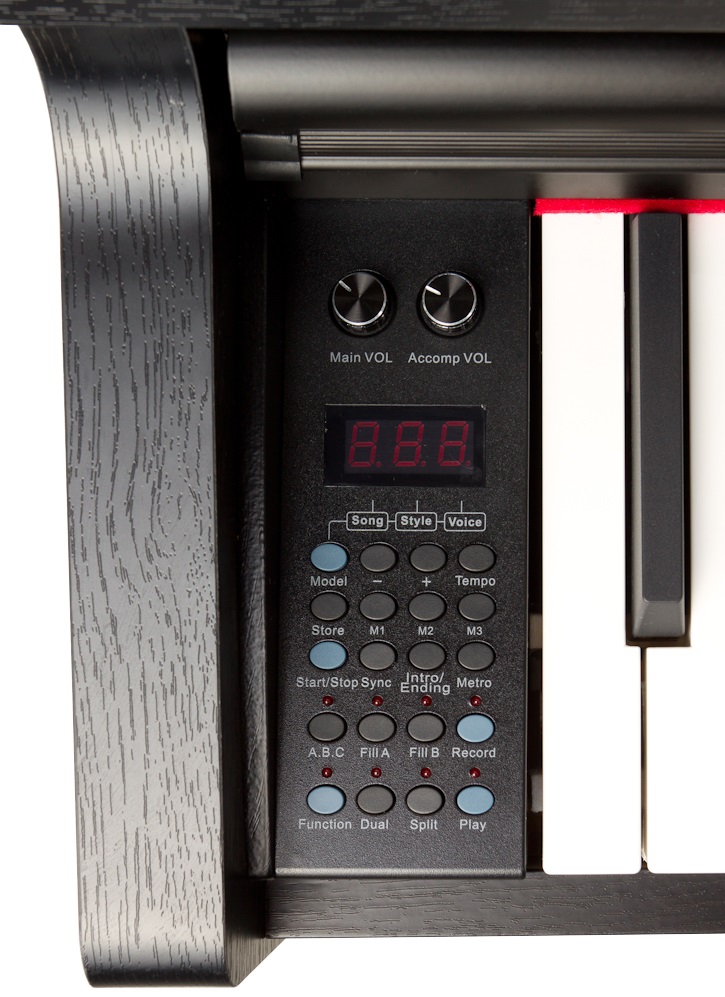 Digitálne piano Digitálne piano s osemdesiatimi ôsmimi dynamicky citlivými klávesmi a kladivkovou mechanikou. Dynamiku hry možno ďalej ovládať pomocou trojitého pedálu, podobne ako pri akustickom klavíri. K dispozícii je 138 zvukových registrov a 100 sprievodných rytmov. Funkcia Layer umožňuje súčasné prehrávanie dvoch zvukov s možnosťou nastavenia pomeru hlasitosti. Klaviatúru je možné rozdeliť pomocou funkcie Split, pričom je možné nastaviť bod rozdelenia. Na vylepšenie zvuku sú k dispozícii efekty Reverb