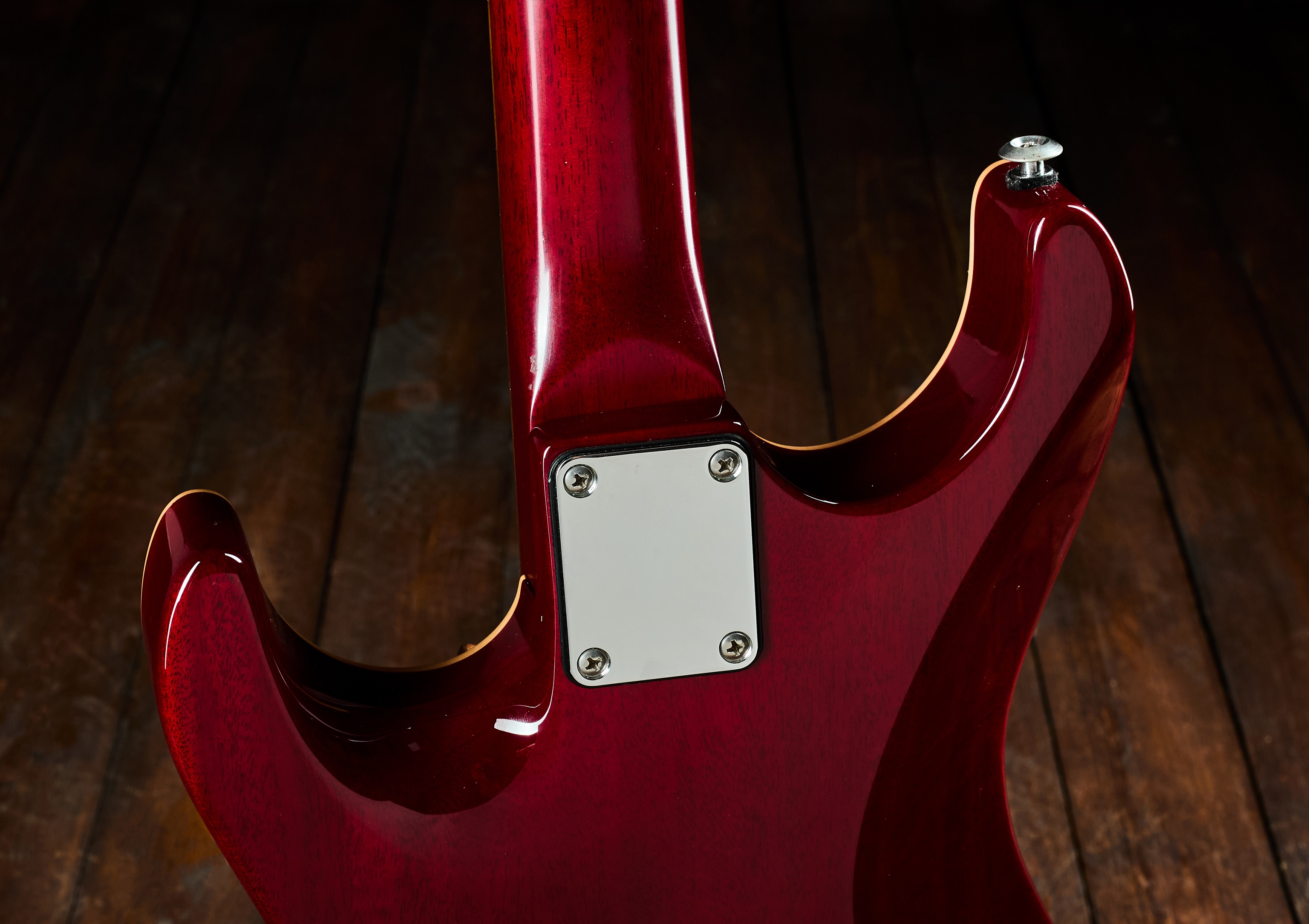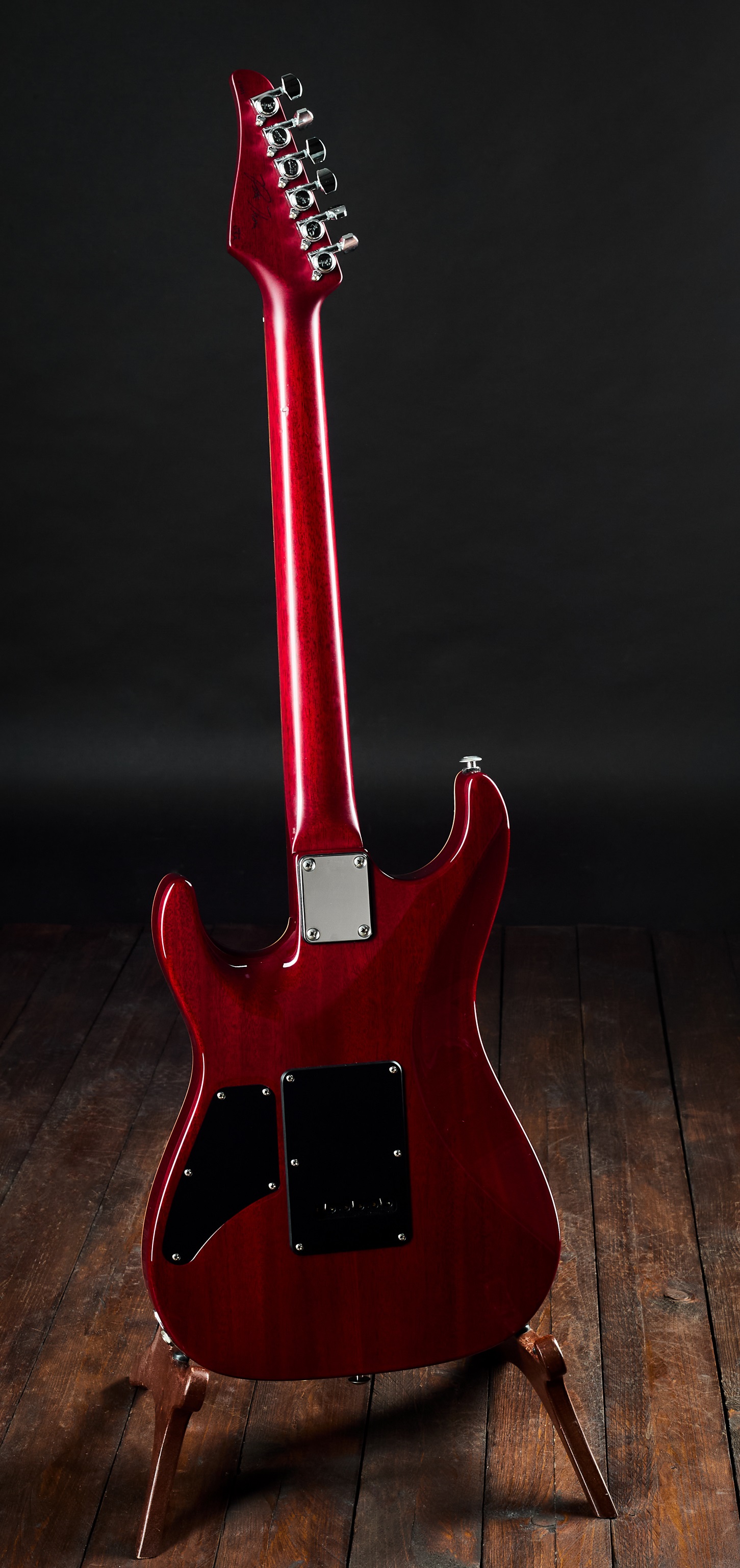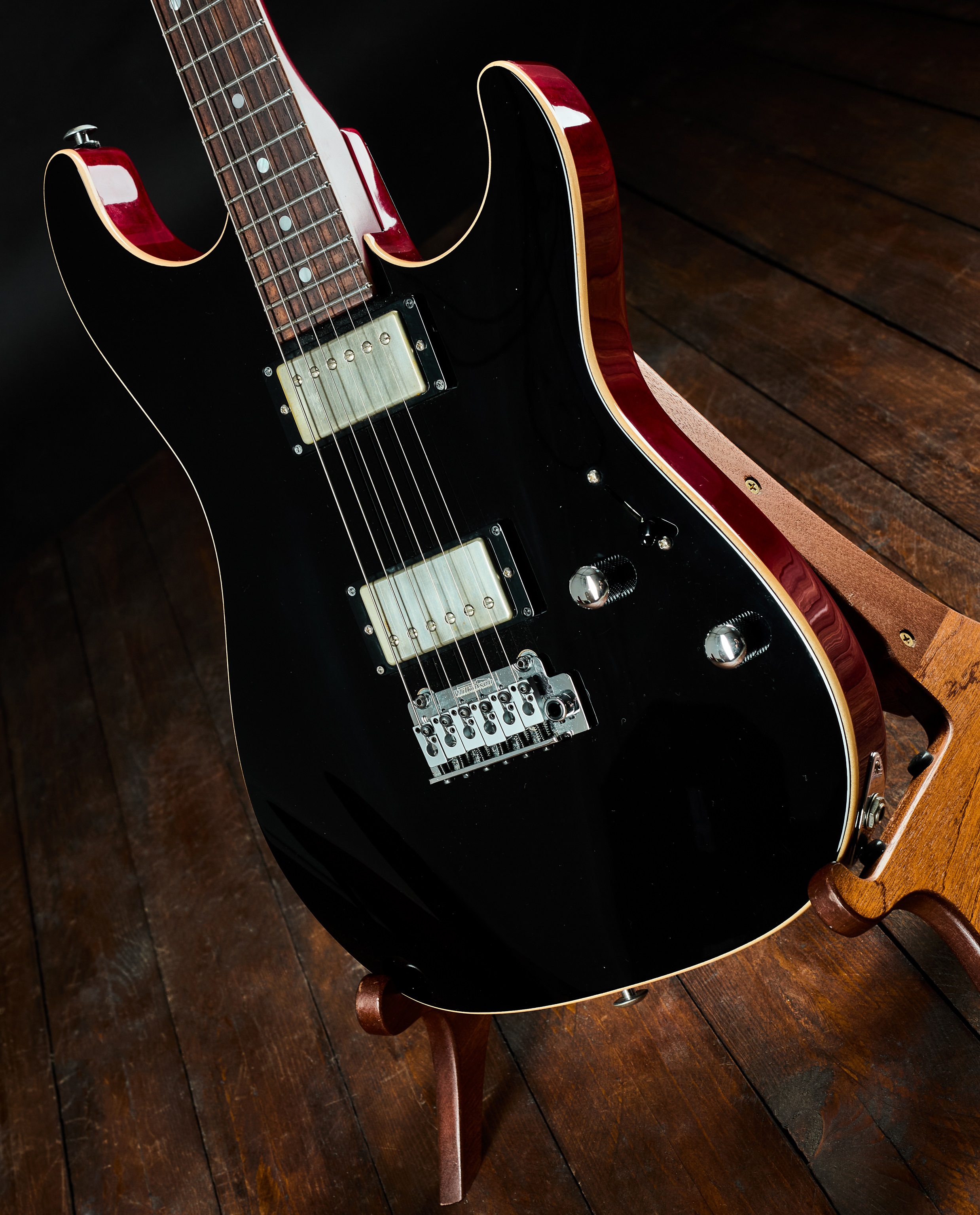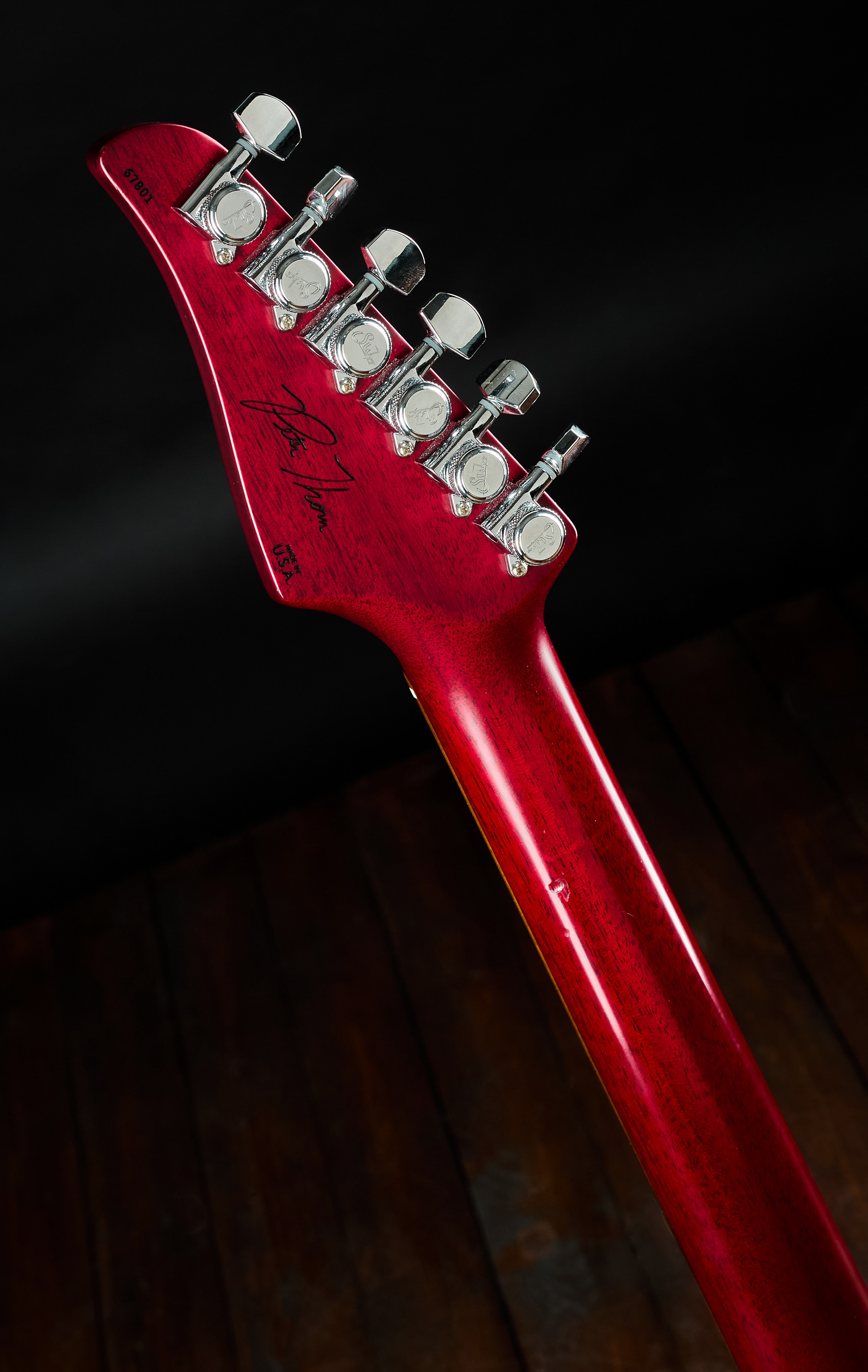 Elektrická gitara Signatúrny nástroj Petea Thorna, druhý majiteľ. Kanaďan Pete Thorn sa nestal známou tvárou preto, že bol členom nejakej známej kapely (hoci je vynikajúcim gitaristom, ktorý koncertoval s mnohými sólovými umelcami, napríklad s Chrisom Cornellom), Ale stal sa slávnym predovšetkým ako YouTuber so svojím kanálom, kde recenzuje gitarové vybavenie a prilákal viac ako štvrť milióna sledovateľov. Moderná mahagónová superstrat vybavená dvoma humbuckermi. Komorové mahagónové telo gitary zdobí javoro