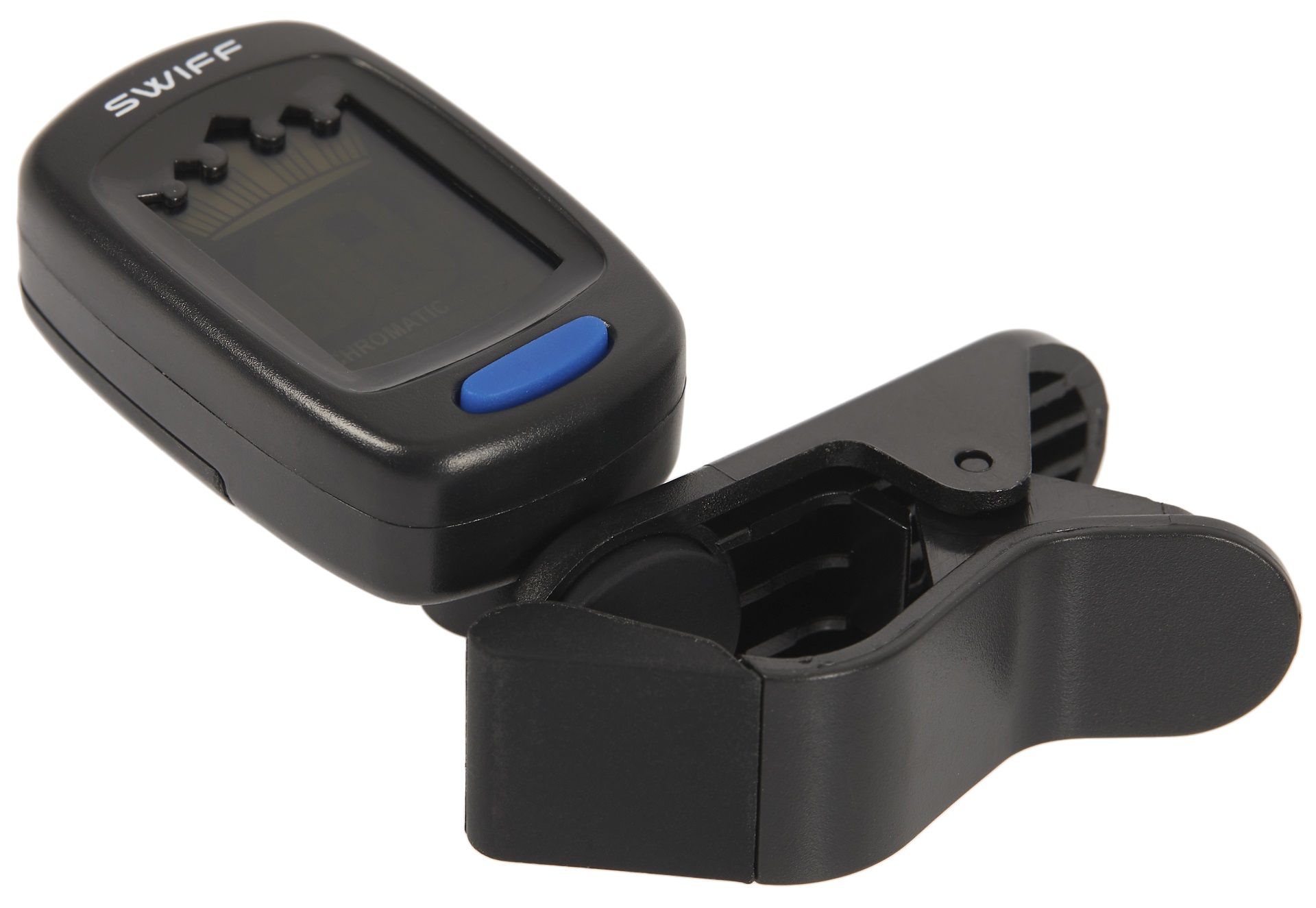 Klipová ladička Swiff A9 je klipová ladička s prehľadným displejom a kreatívnym dizajnom korunky, ktorá vynikne v každej situácii. Jej flexibilný kĺbový mechanizmus umožňuje otáčať displej v ľubovoľnom smere. Má päť režimov ladenia – okrem klasického chromatického režimu ponúka režimy na ladenie gitary, ukulele, basgitary a huslí. Ladí tóny v rozsahu A0-C8 a jej ladiaca frekvencia je 440 Hz. Napája sa batériou CR2032. Výhodou klipových ladičiek je, že reagujú na vibrácie nástroja, vďaka čom