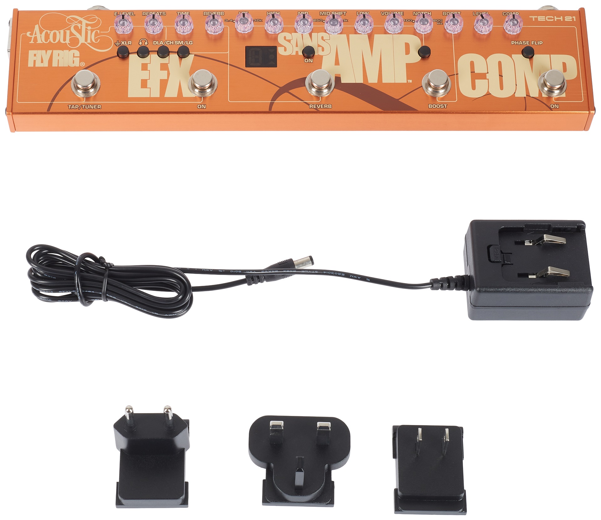 Gitarový multiefekt Acoustic Fly Rig je multiefekt/predzosilňovač pre akustické nástroje vyrobený spoločnosťou Tech 21. V kompaktnej a prehľadnej forme ponúka všetko, čo potrebujete ako hráč na akustickú gitaru alebo iný akustický nástroj na pódiu alebo v štúdiu. Úplne sa zbavíte „radostí“ zamotaných káblov, otravnej spätnej väzby alebo demoralizujúcich vizuálnych a zvukových varovaní o vybitej batérii vo vašom pedálovom efekte. Zároveň nebudete musieť listovať v databázach predvolieb ani dešifrovať informá