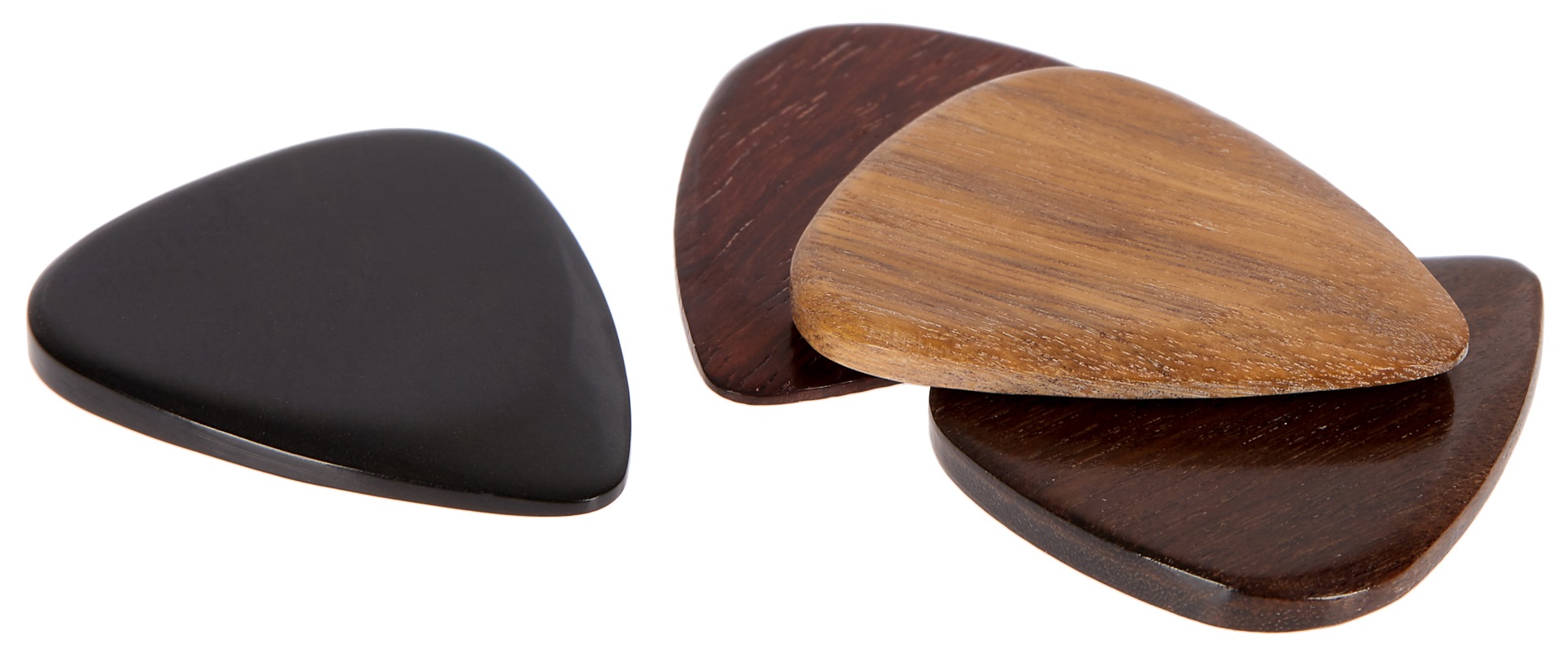 Brnkátka Či už hľadáte darček pre nadšeného gitaristu, alebo len hľadáte dokonalý zvuk a chcete vyskúšať trsátka z netradičných materiálov, v Timber Tones nájdete to, čo potrebujete. V tejto sade sa nachádzajú štyri trsátka z exotických tvrdých drevín – ligotavého dreva, afrického ebenového dreva, indického gaštanu a krvavého dreva, ktoré sú vhodné najmä na hru na elektrickú gitaru. Majú hrúbku 2,4 mm, ktorá sa smerom k špičke zužuje na 0,7 mm. Sú ručne brúsené a lakované. Britská spoločnos