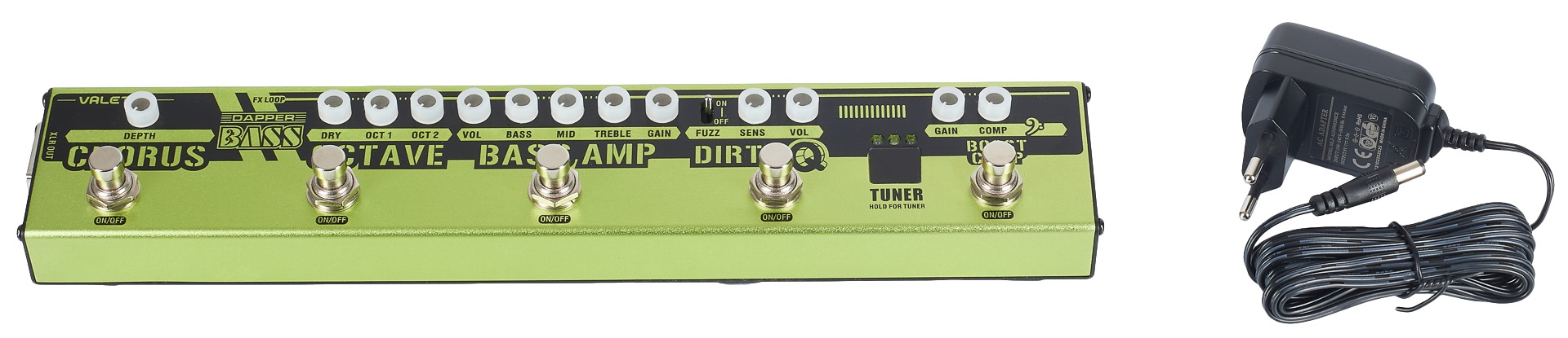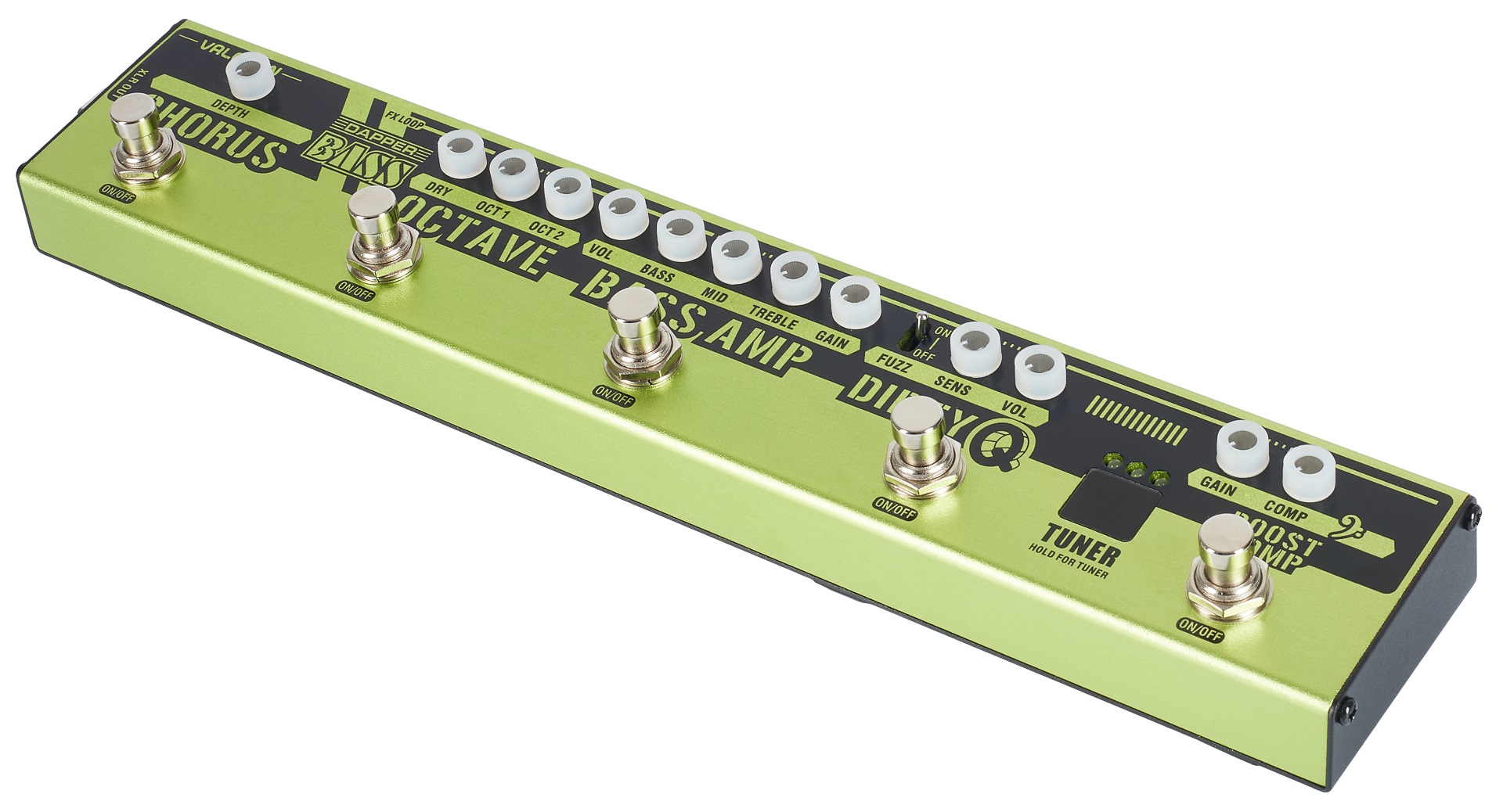 Basgitarový multiefekt Dapper Bass je podlahový multiefekt pre elektrickú basgitaru s intuitívnym používateľským rozhraním a piatimi samostatnými sekciami efektov. Predstavenie otvára sekcia nakopávajúceho boosteru a kompresie, zatiaľ čo Dirty Q s obálkovým filtrom a prepínateľným fuzzom dodáva zvuku trochu funky groovu, ktorý si potom vyladíte podľa svojich predstáv v sekcii predzosilňovača basgitary s trojpásmovým ekvalizérom. Ďalšie dve efektové sekcie ponúkajú monofónny Octave s možnosťou harmonizácie l